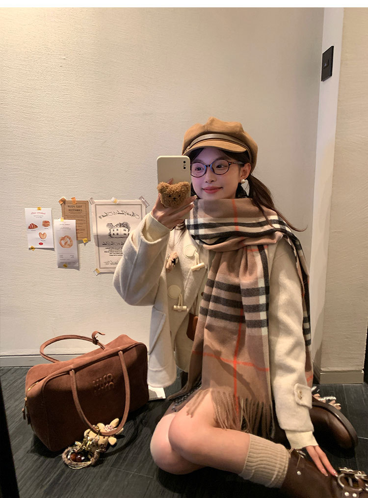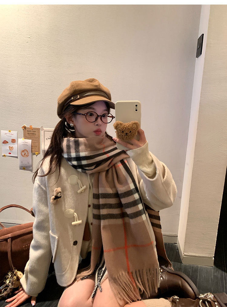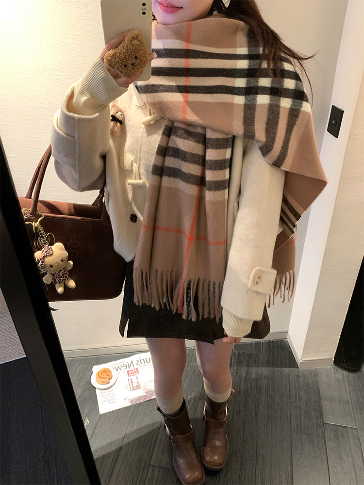 【我的头不圆】经典格纹仿羊绒围巾女款2024新款英伦格子披肩冬季