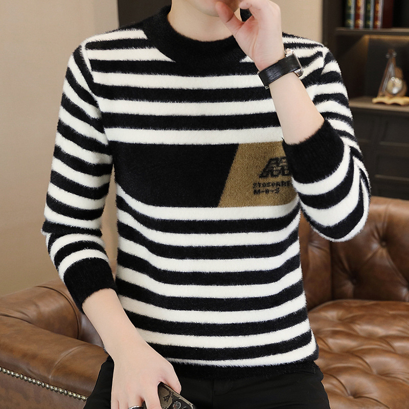 국경 간 대외 무역 AliExpress 폭발 남성용 트렌디 한 반 터틀넥 모방 밍크 벨벳 옐로우 골든 밍크 스웨터스토어 가기