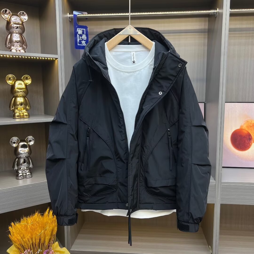 봄과 가을 새로운 스타일 코트 남성 트렌디 브랜드 얇은 코튼 패딩 코트 캐주얼 올 매치 후드 블랙 사무라이 재킷 코트 패션 충전 옷스토어 가기