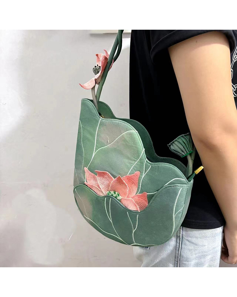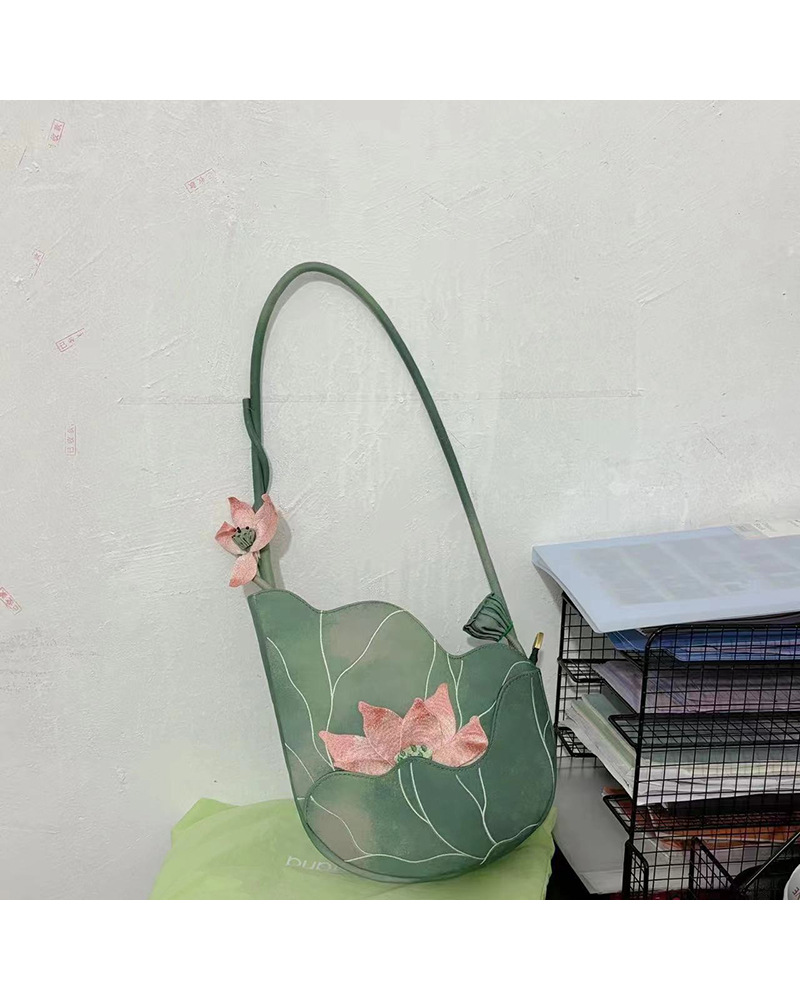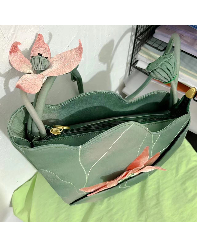 로터스 백 중국 스타일 새로운 중국 스타일 손으로 수 놓은 문학 치파오 기질 토트 백 싱글 숄더 휴대용 겨드랑이 가방 유행