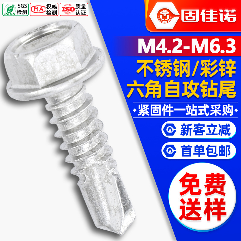 410 스테인레스 스틸 외부 육각 드릴 테일 나사, 스왈로우 테일 네일, 셀프 태핑 나사, 스왈로우 테일 와이어, 컬러 강철 타일 드릴 테일 와이어 M6.3