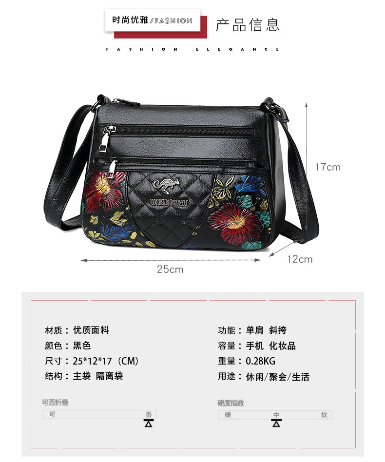 2024 새로운 중년 어머니 가방 수제 손으로 그린 패턴 패션 대용량 자수 디자인 다층 크로스 바디 백