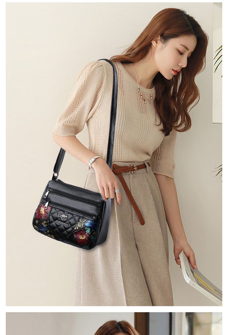 2024 새로운 중년 어머니 가방 수제 손으로 그린 패턴 패션 대용량 자수 디자인 다층 크로스 바디 백스토어 가기
