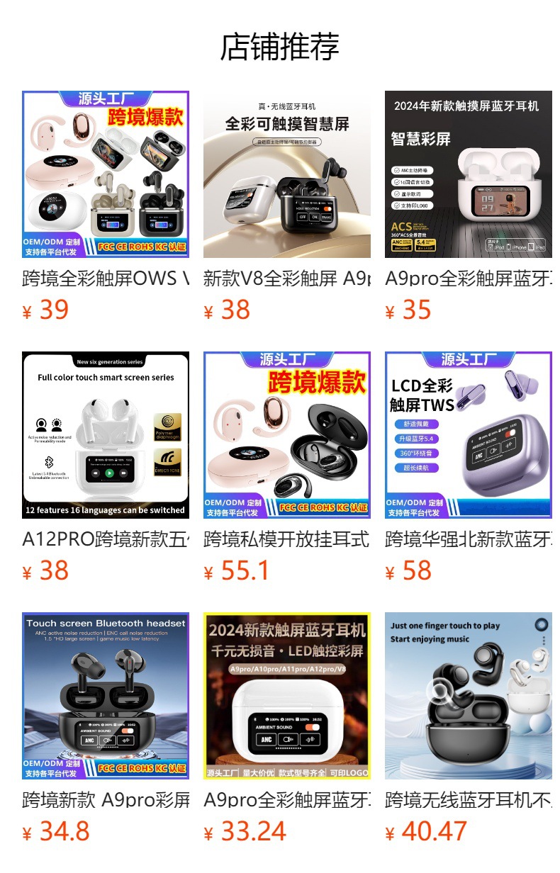 국경 간 터치 스크린 A9PRO 블루투스 헤드셋 소음 감소 A15Pro 이어폰 무선 초장 배터리 수명 공장 디지털 디스플레이스토어 가기