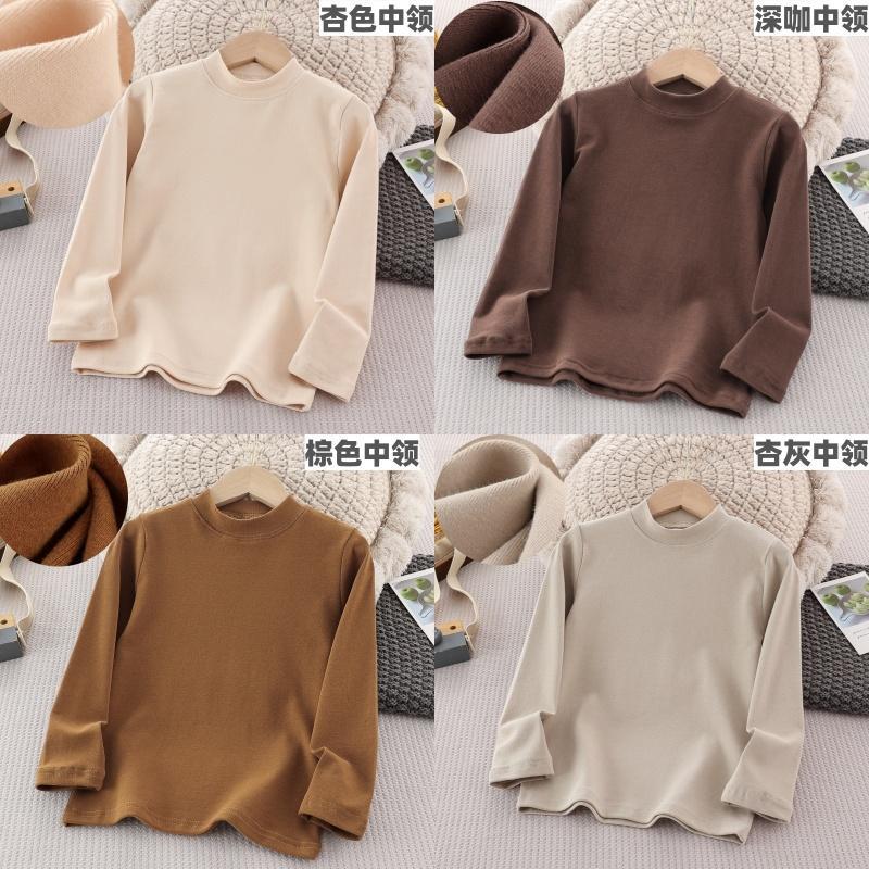 2024秋冬儿童无骨薄绒中领打底衫男女童纯色上衣宝宝弹力半高领20.5RMB立即购买>