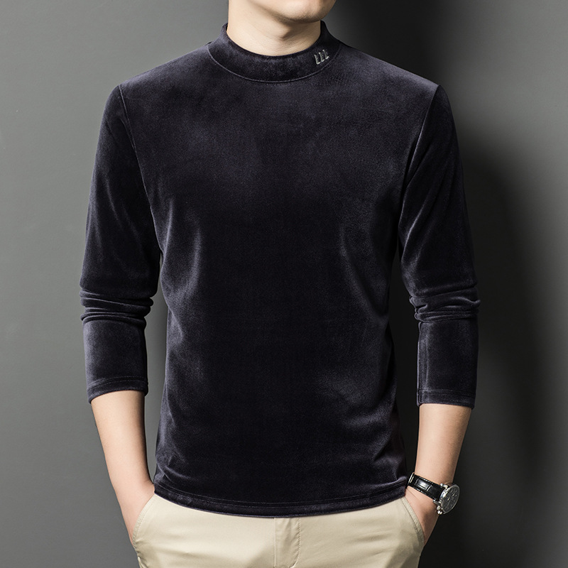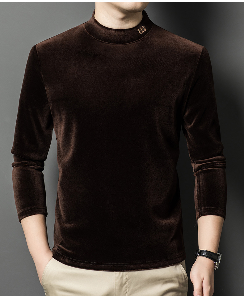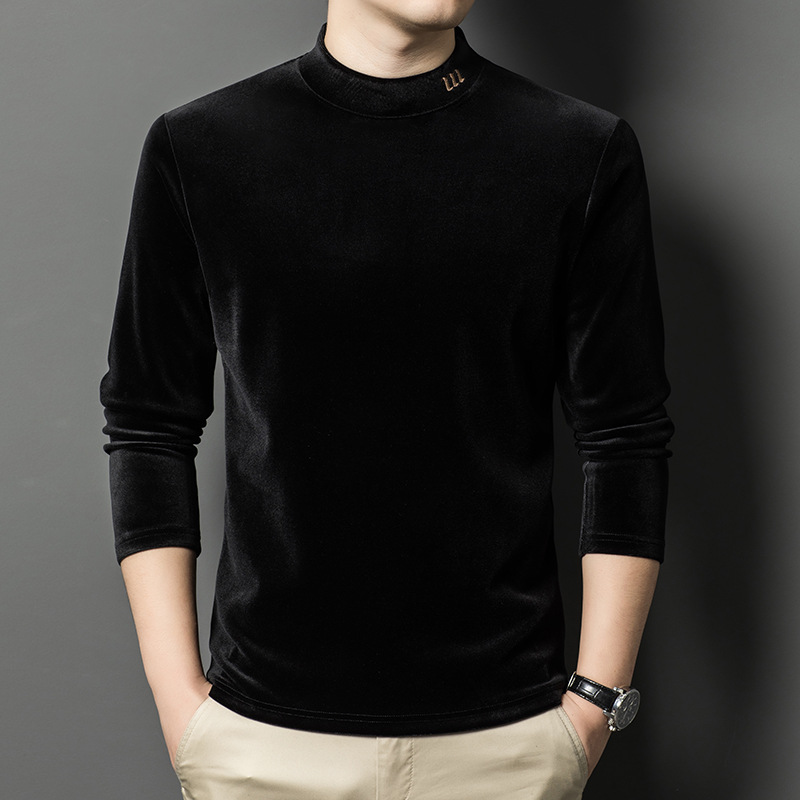 남자 가을과 겨울 반 높이 칼라 골드 벨벳 자수 니트 기모 스웨터 청소년 패션 우아한 올매치베이스 스웨터