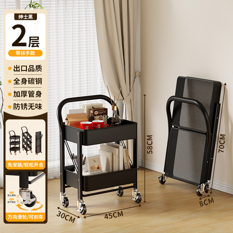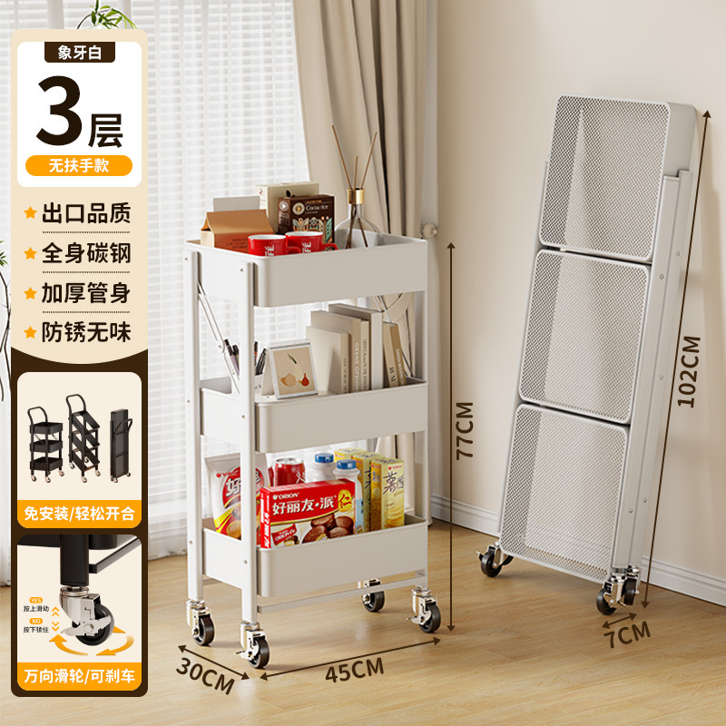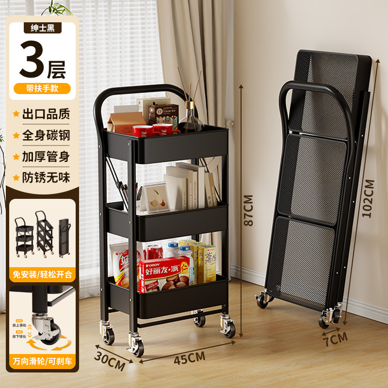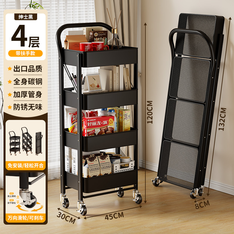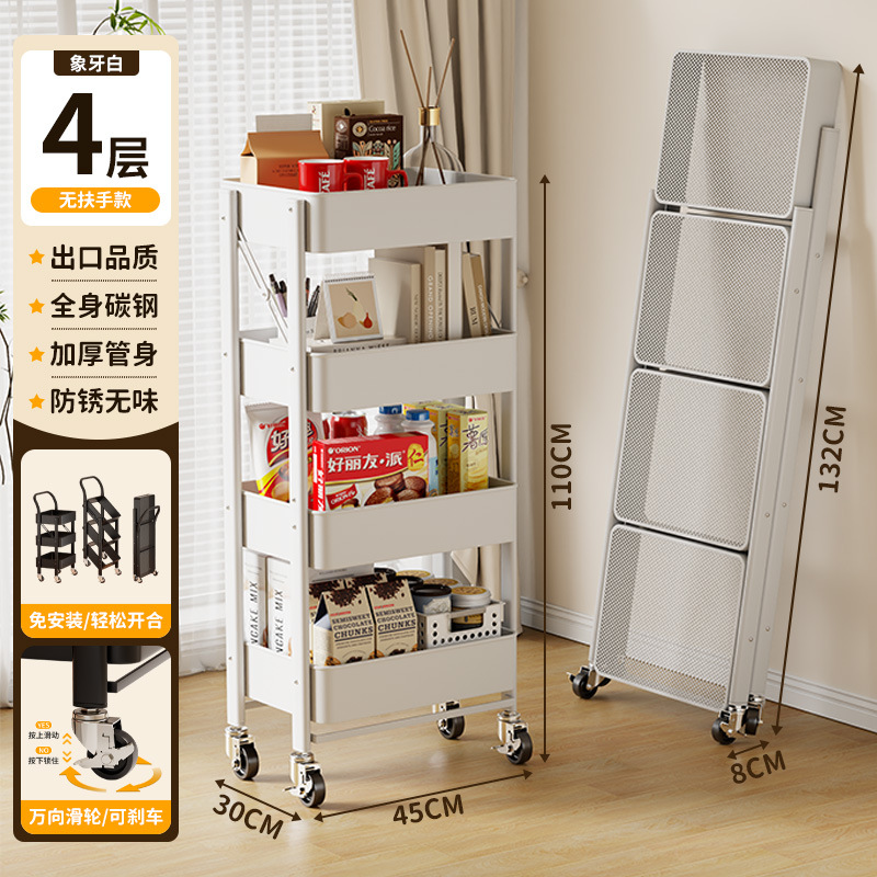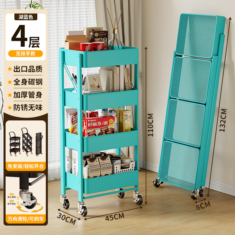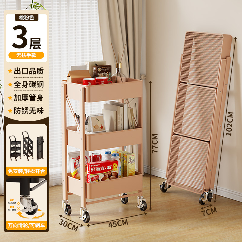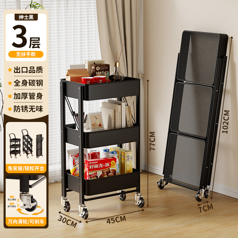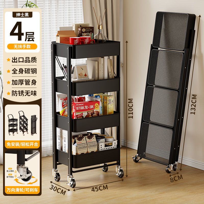 가정용 이동식 책장 침실 수납 선반 소형 트롤리 접이식 주방 탄소강 무설치 수납 선반