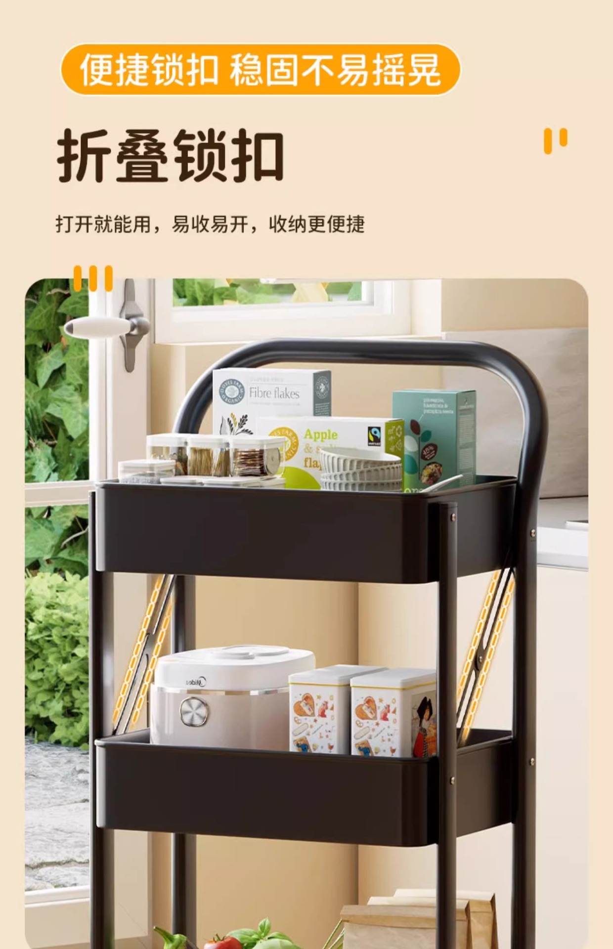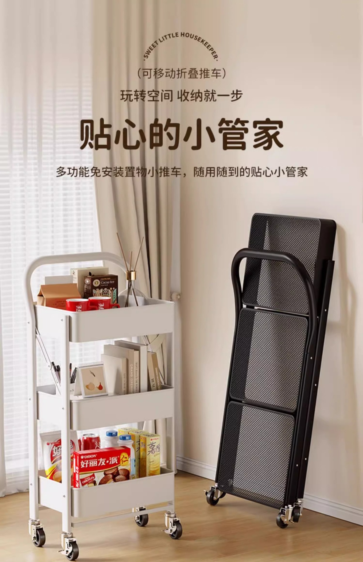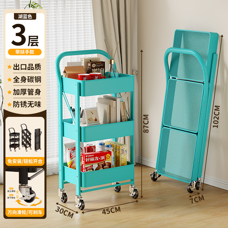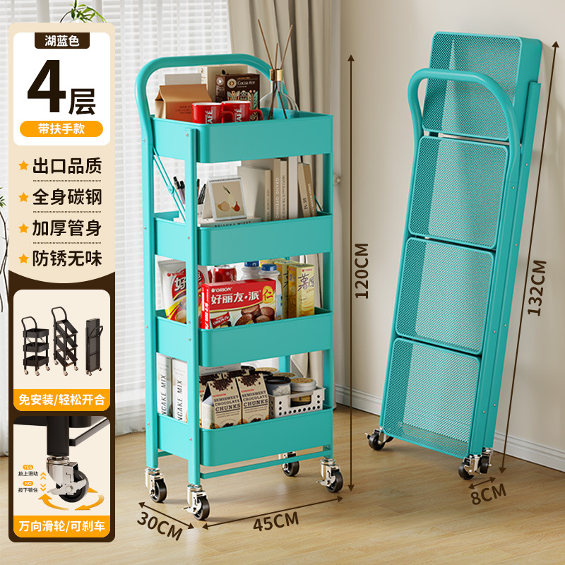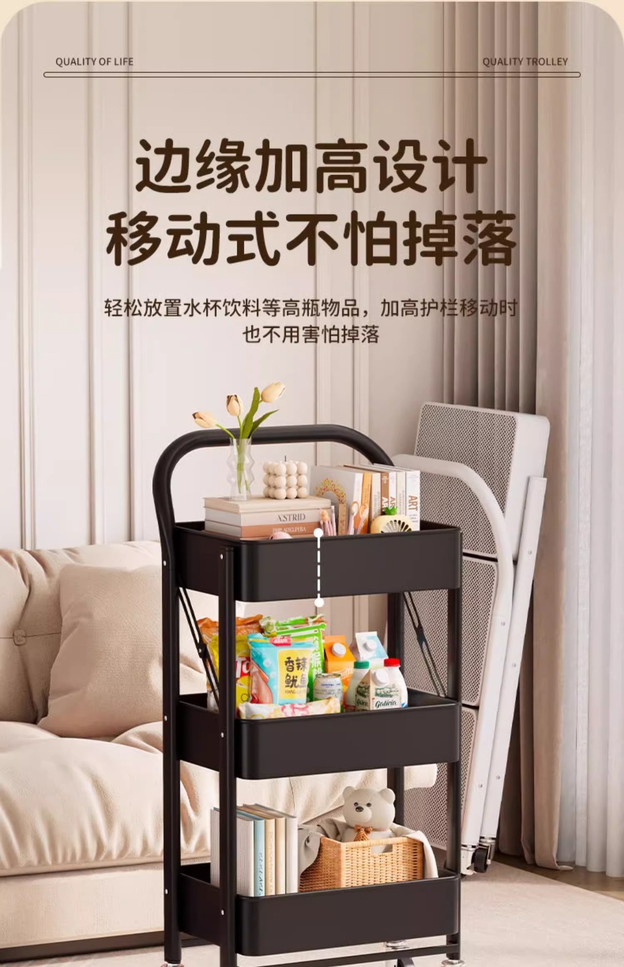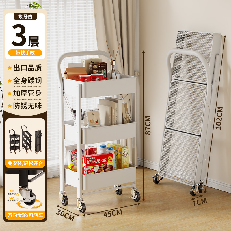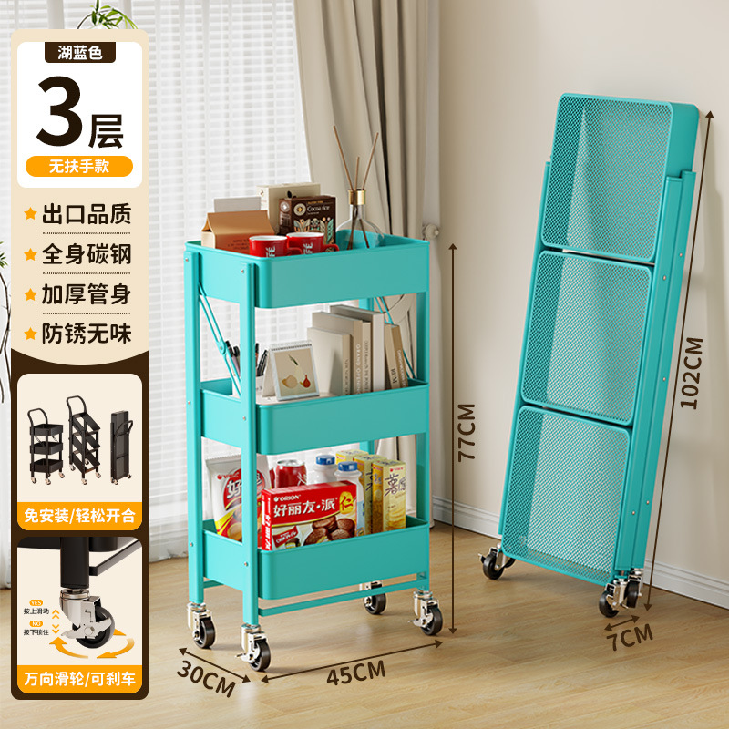 가정용 이동식 책장 침실 수납 선반 소형 트롤리 접이식 주방 탄소강 무설치 수납 선반