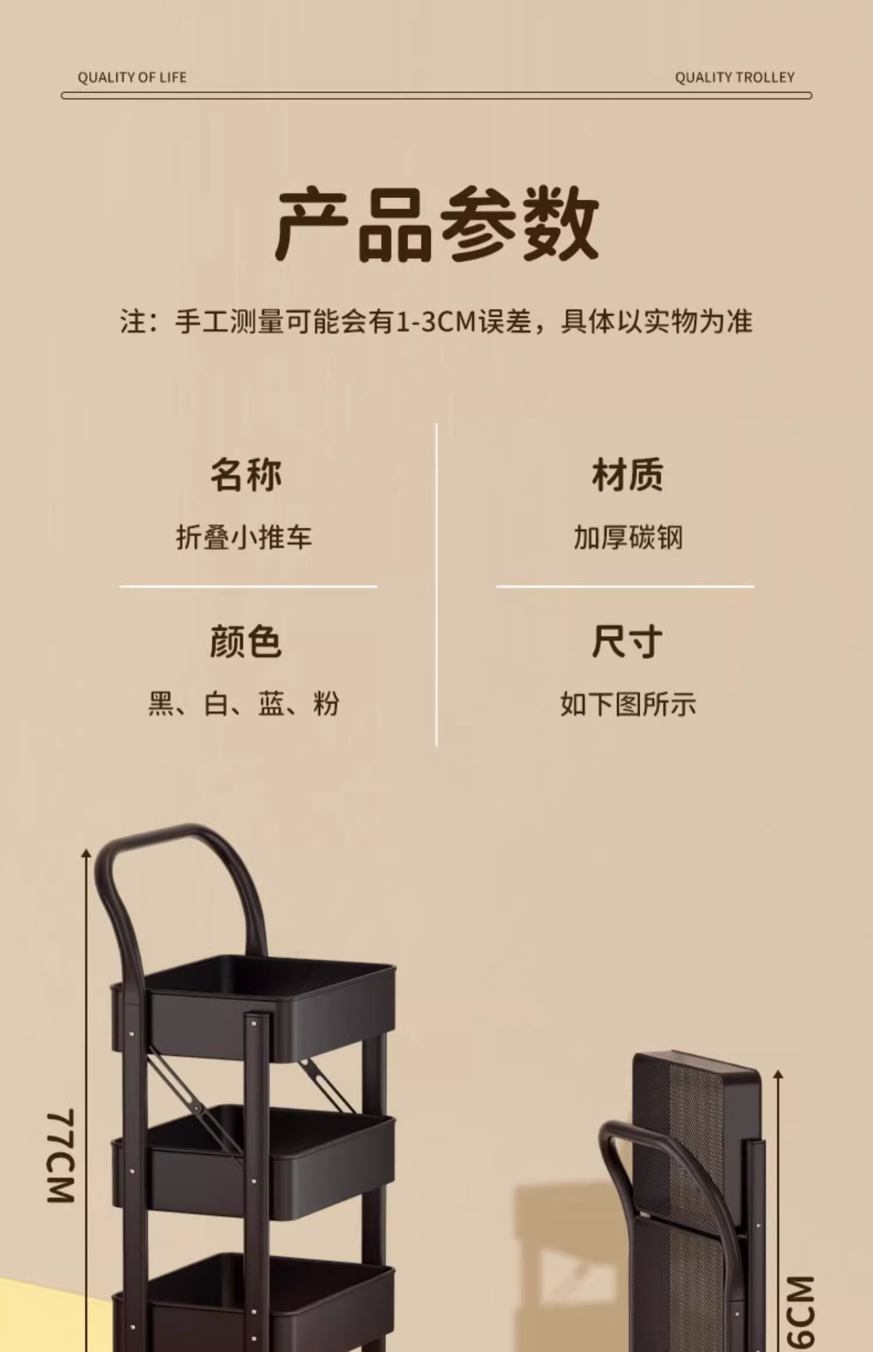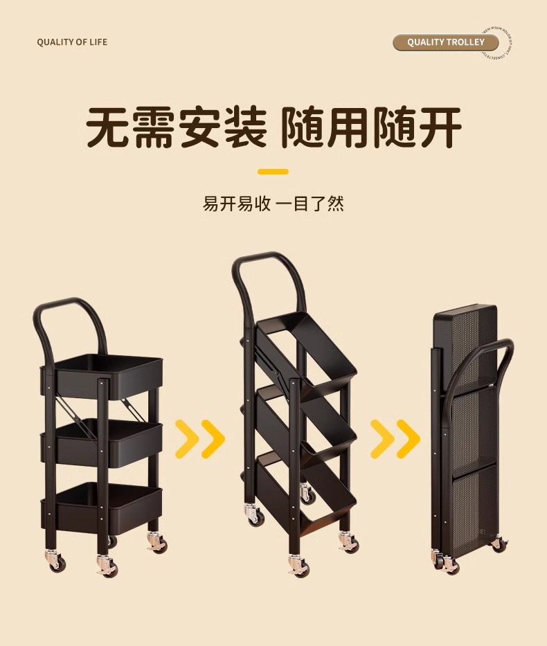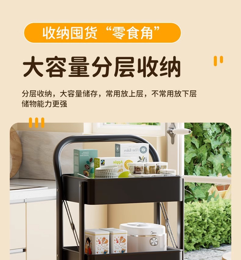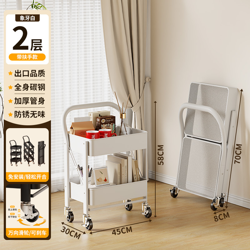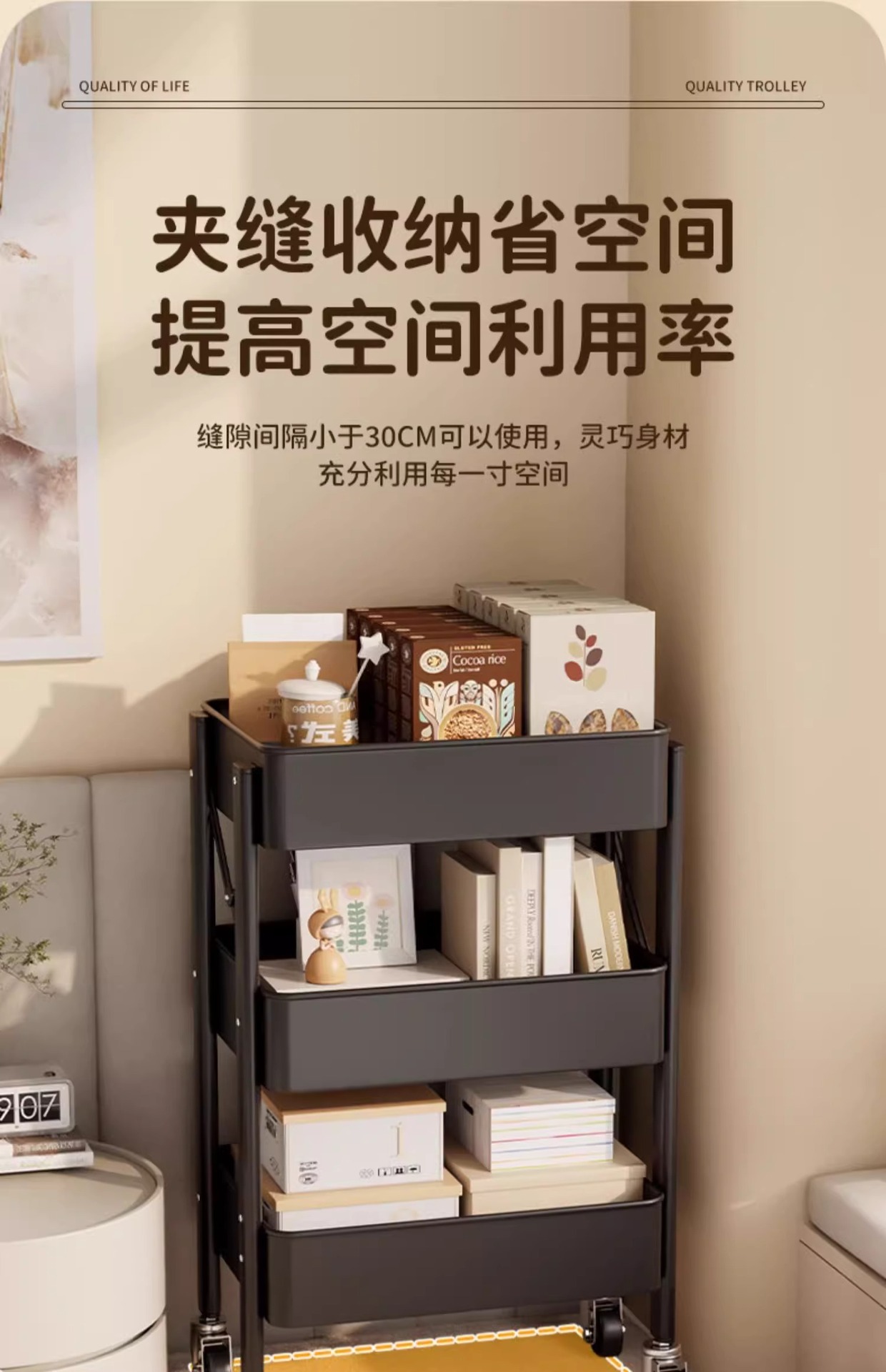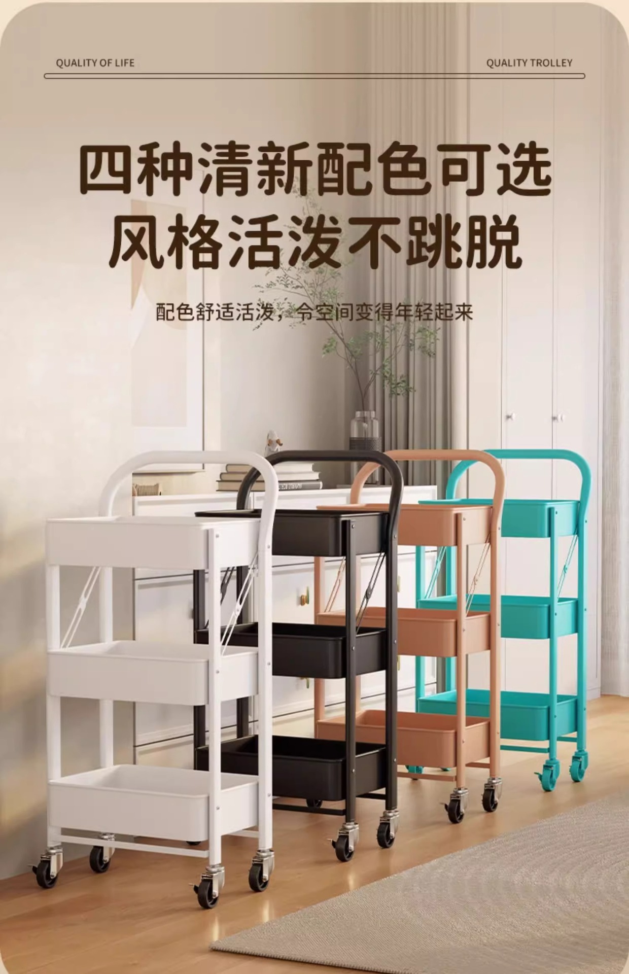 가정용 이동식 책장 침실 수납 선반 소형 트롤리 접이식 주방 탄소강 무설치 수납 선반