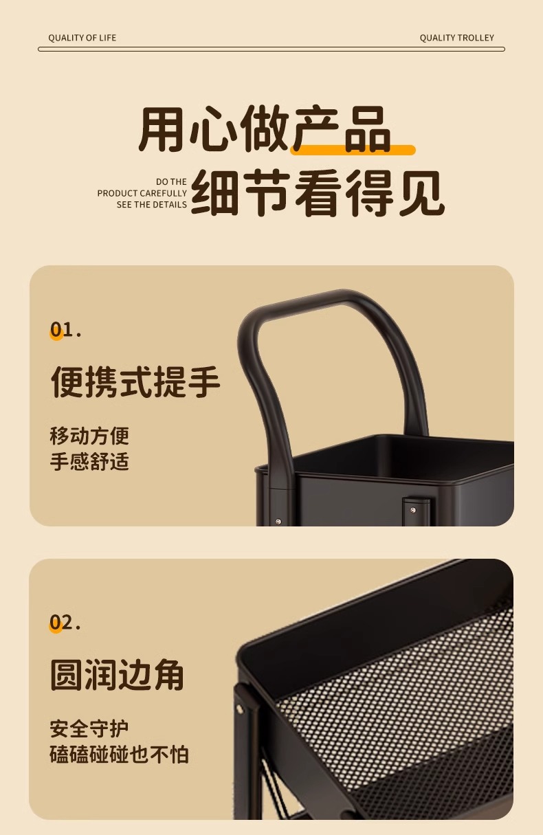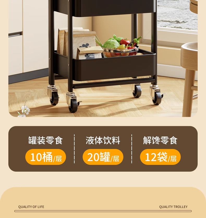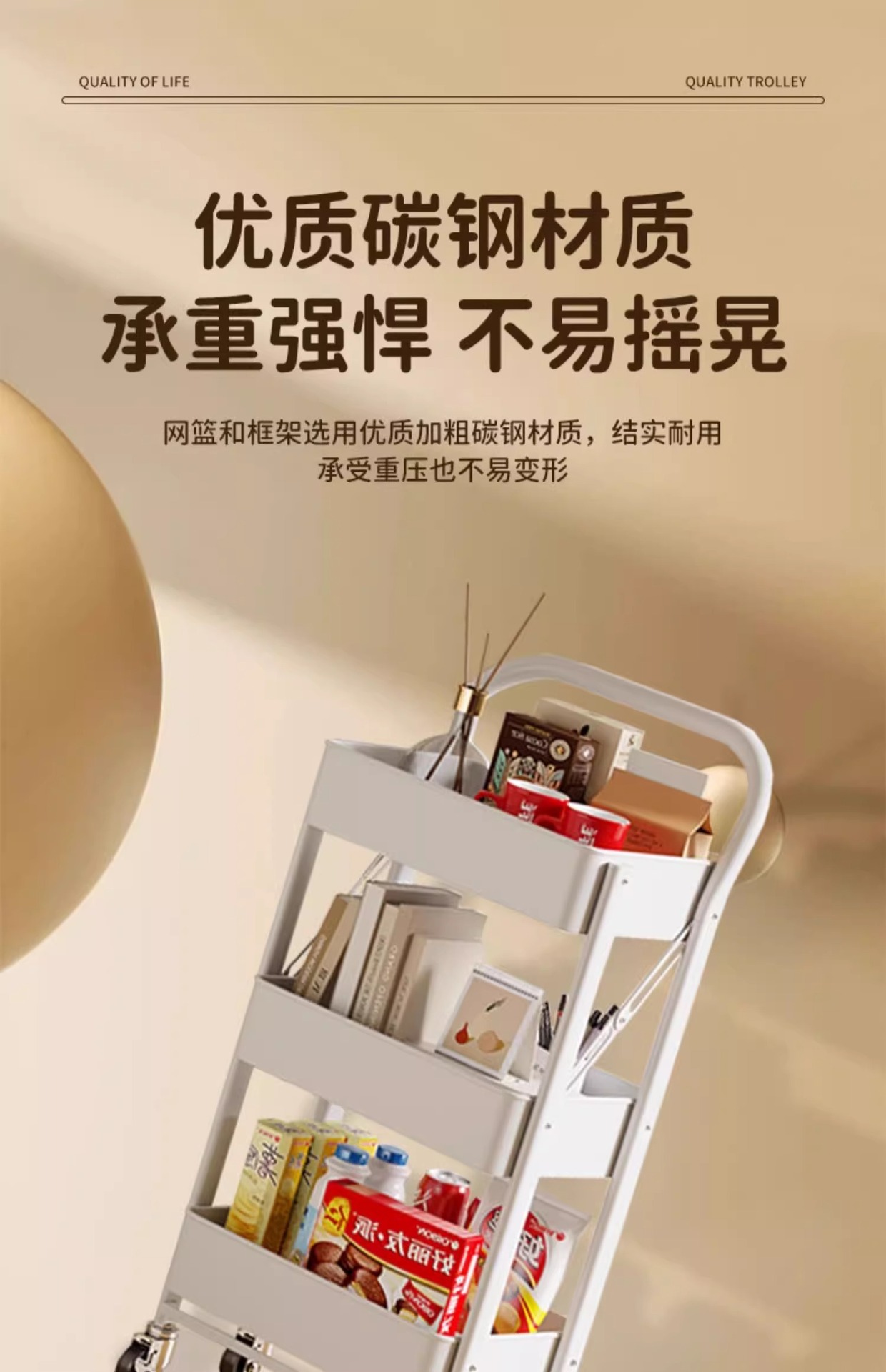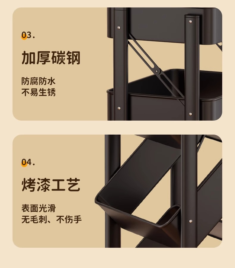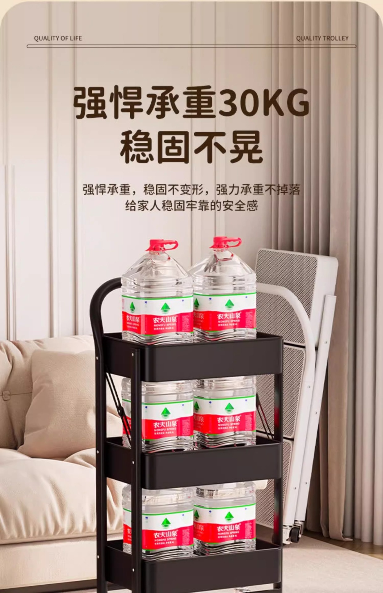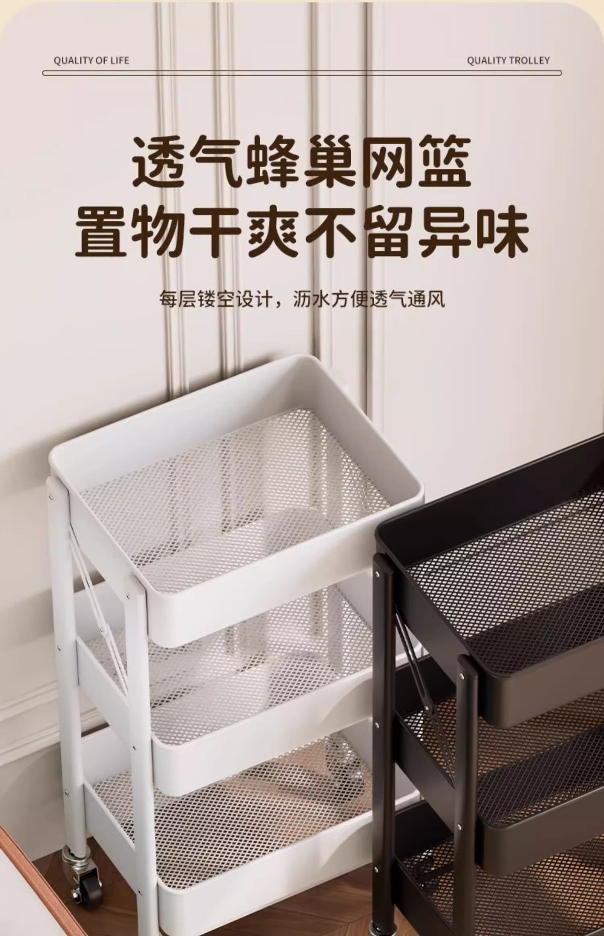 가정용 이동식 책장 침실 수납 선반 소형 트롤리 접이식 주방 탄소강 무설치 수납 선반