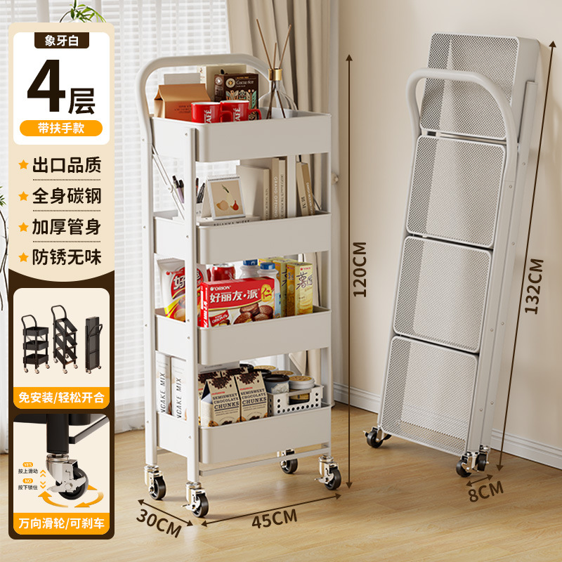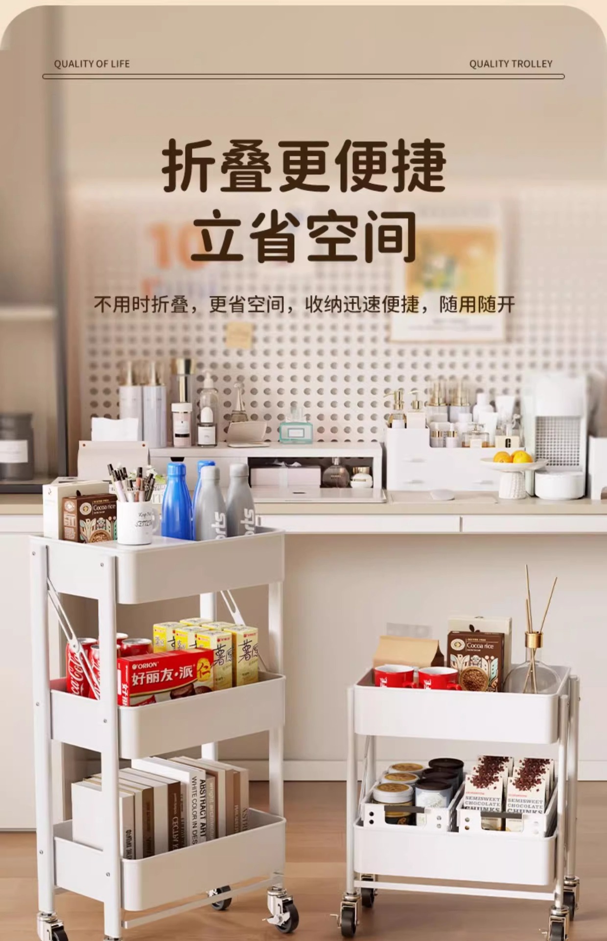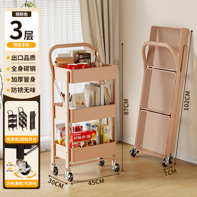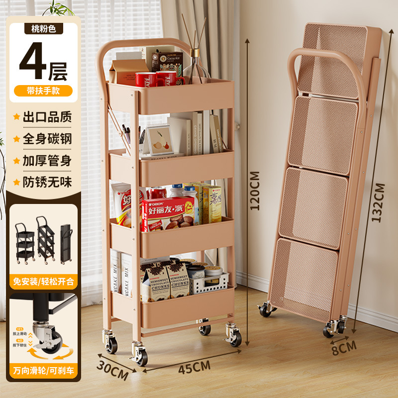 가정용 이동식 책장 침실 수납 선반 소형 트롤리 접이식 주방 탄소강 무설치 수납 선반스토어 가기