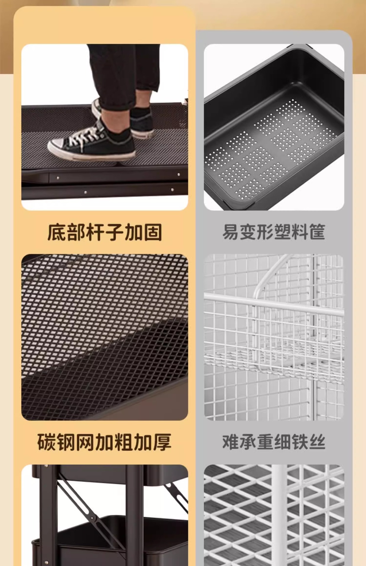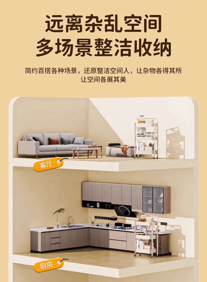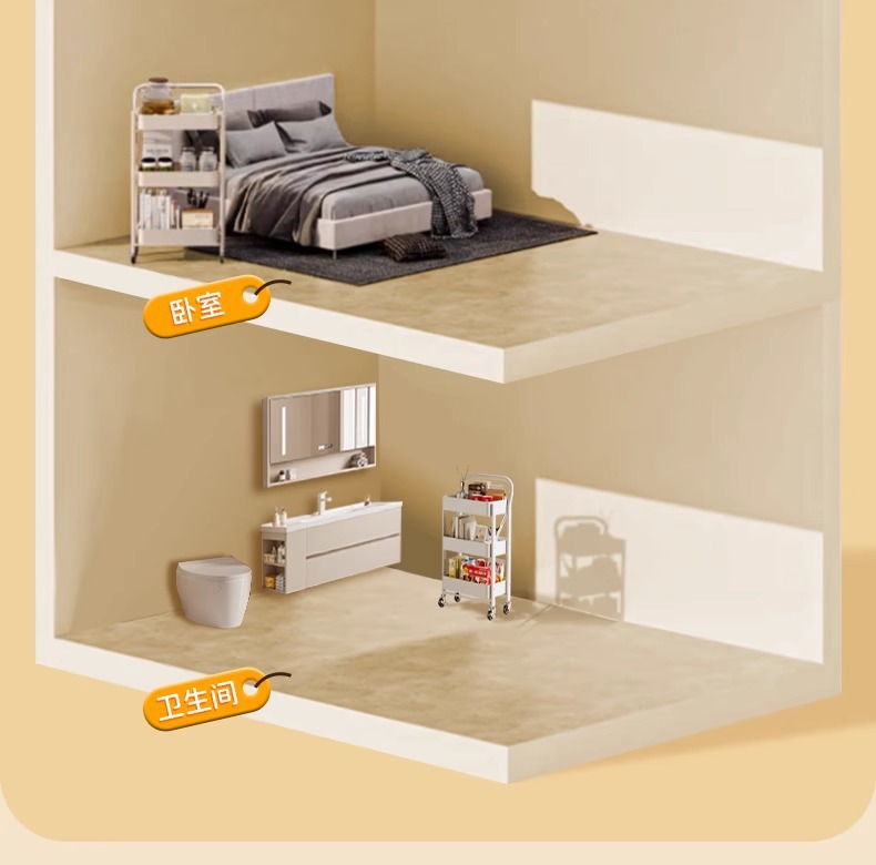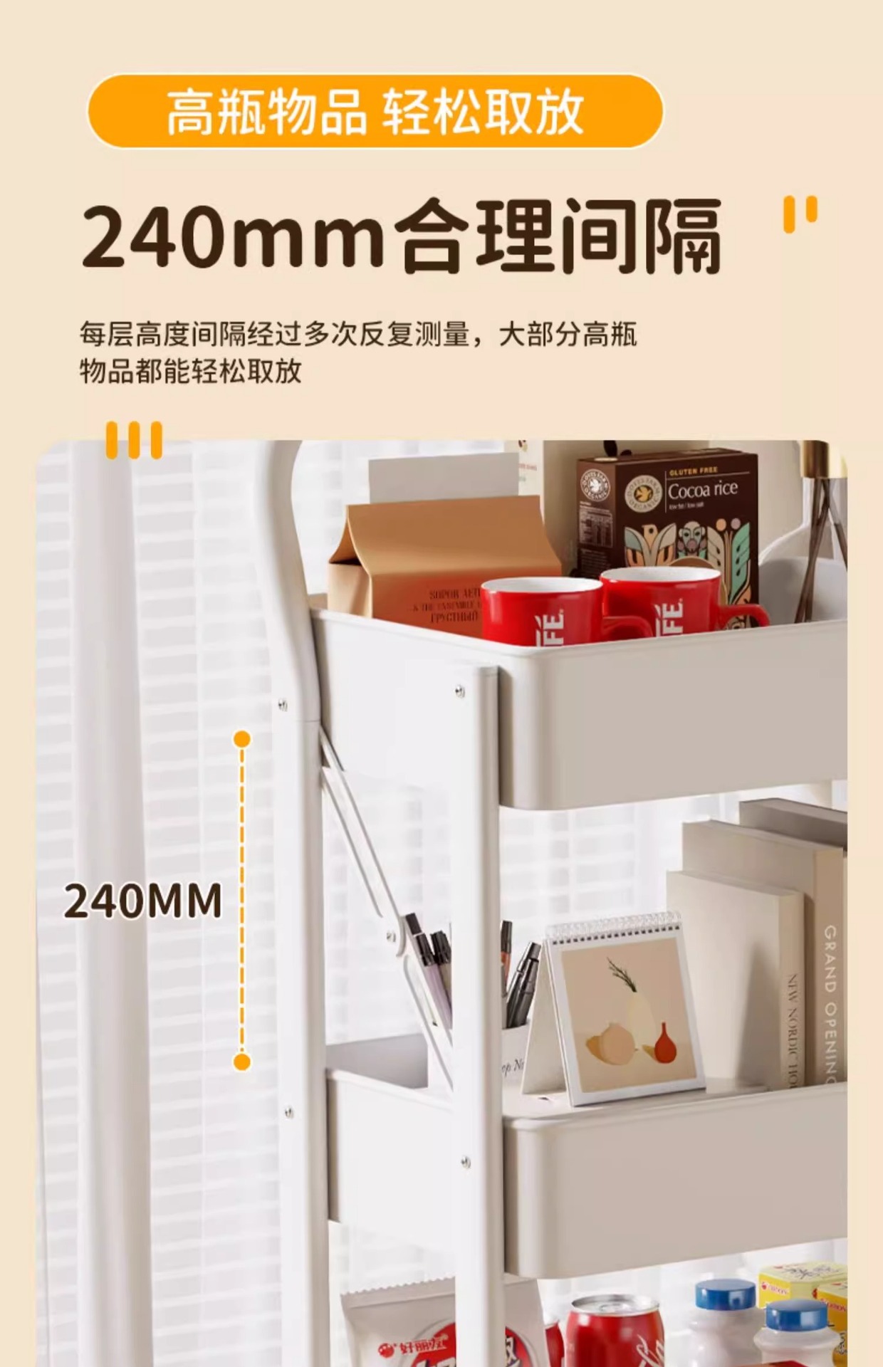 가정용 이동식 책장 침실 수납 선반 소형 트롤리 접이식 주방 탄소강 무설치 수납 선반스토어 가기
