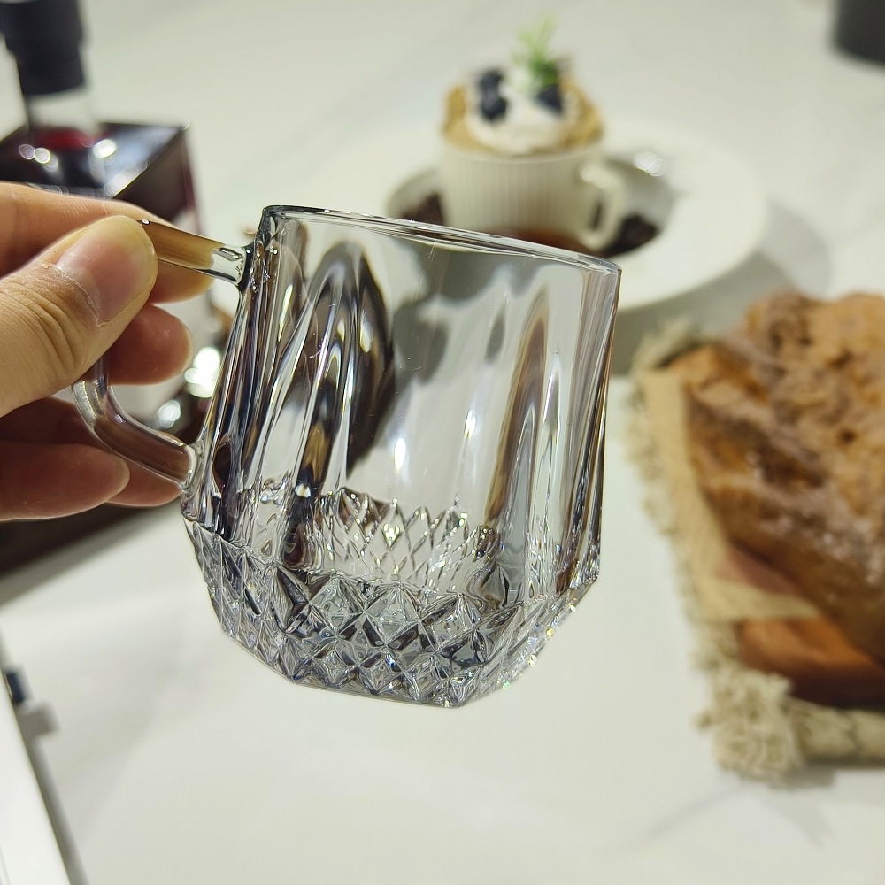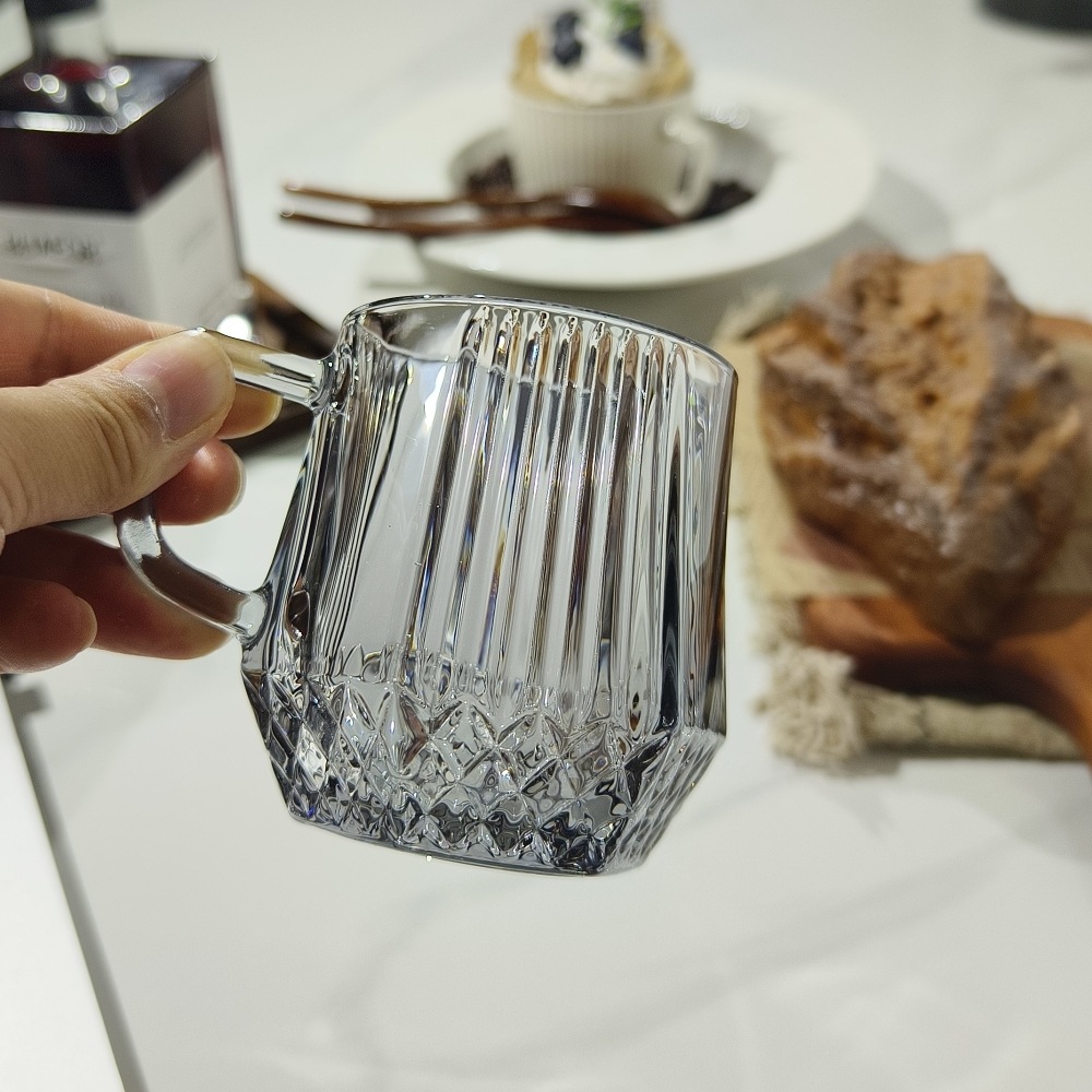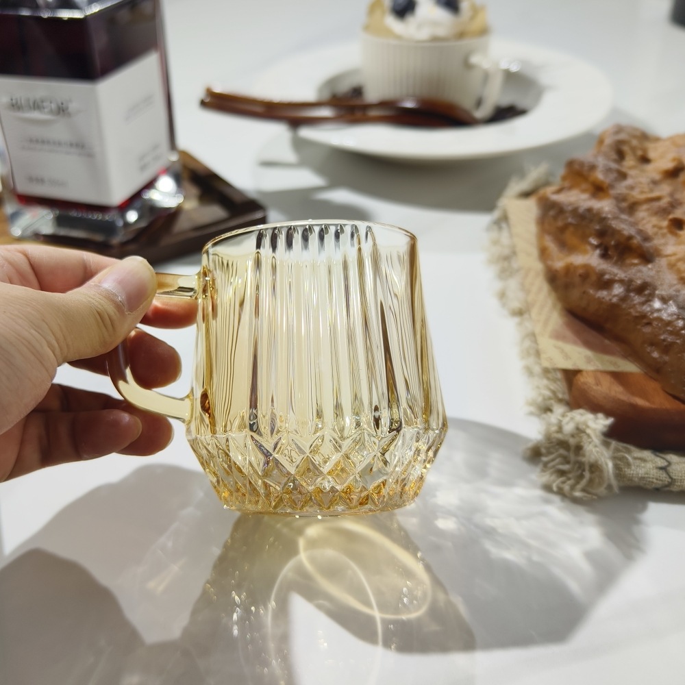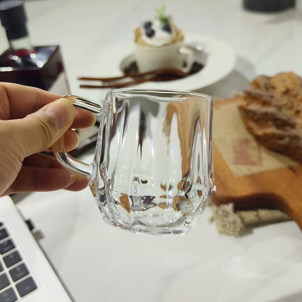 도매 커플 호텔 줄무늬 세척 컵 핸들 유리 컵 티 컵 티 컵 투명