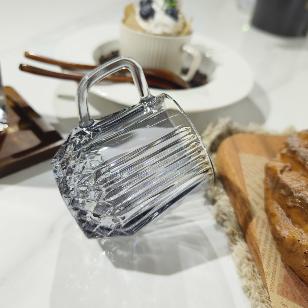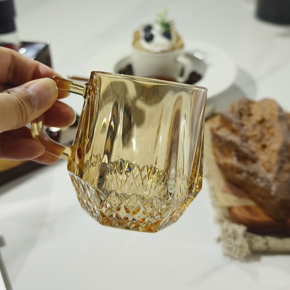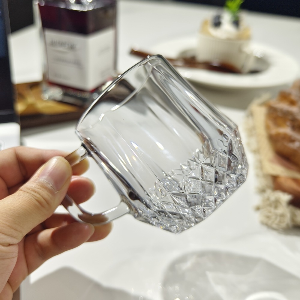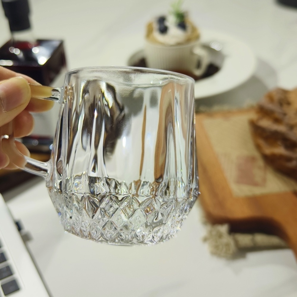 도매 커플 호텔 줄무늬 세척 컵 핸들 유리 컵 티 컵 티 컵 투명