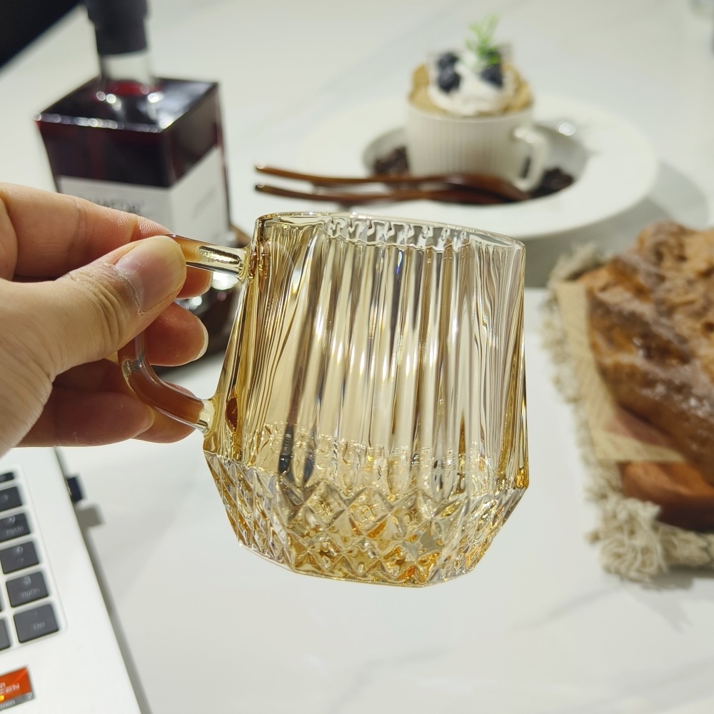 도매 커플 호텔 줄무늬 세척 컵 핸들 유리 컵 티 컵 티 컵 투명스토어 가기