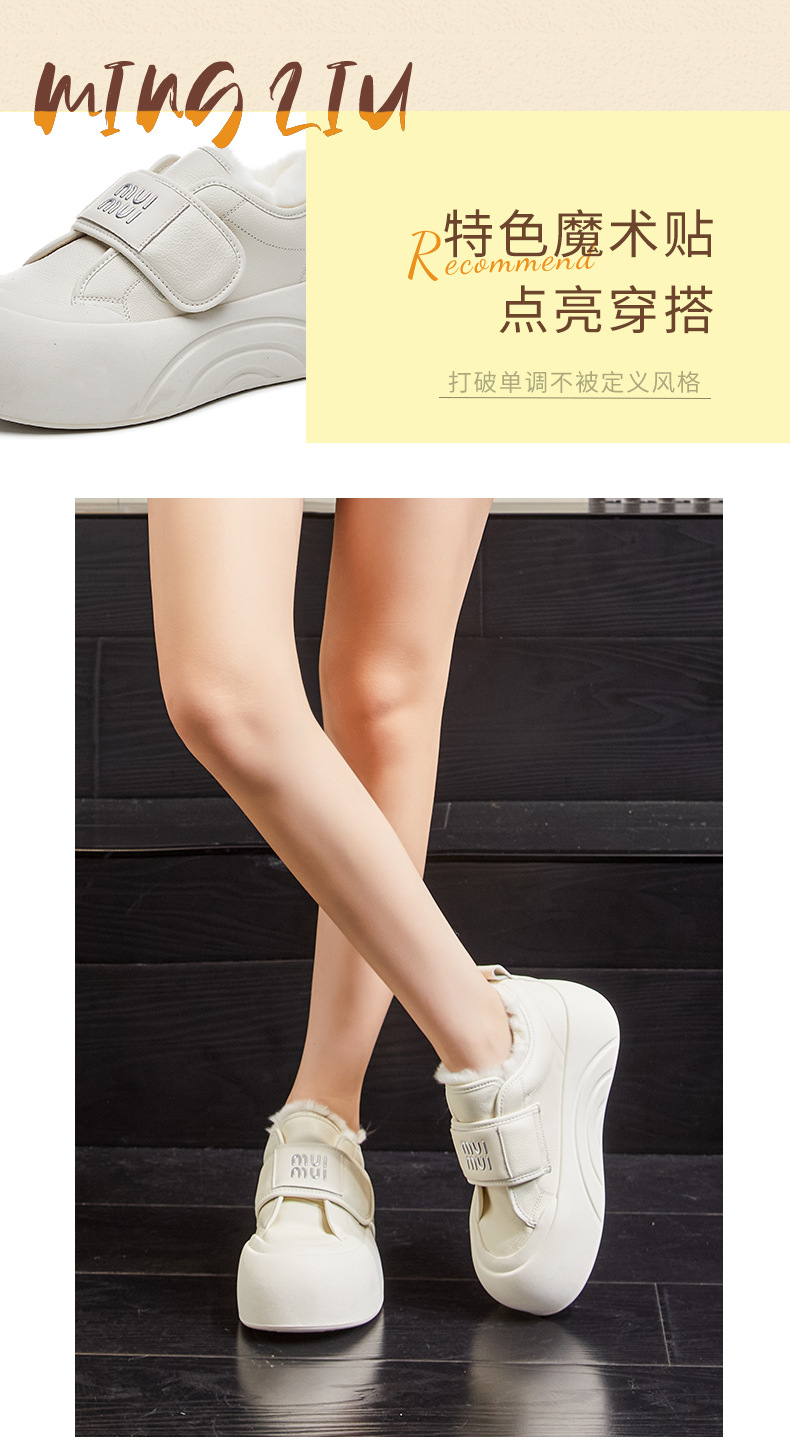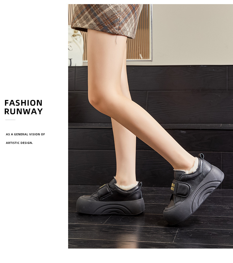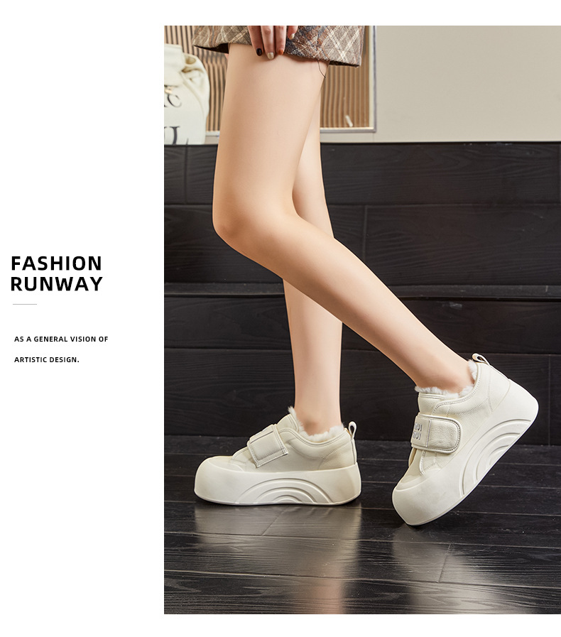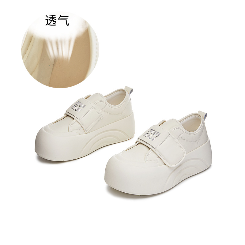 1층 소가죽 화이트 슈즈 여성용 2025 가을 겨울 신상 벨크로 스니커즈 여성 캐주얼 두꺼운 밑창 다용도 신발스토어 가기