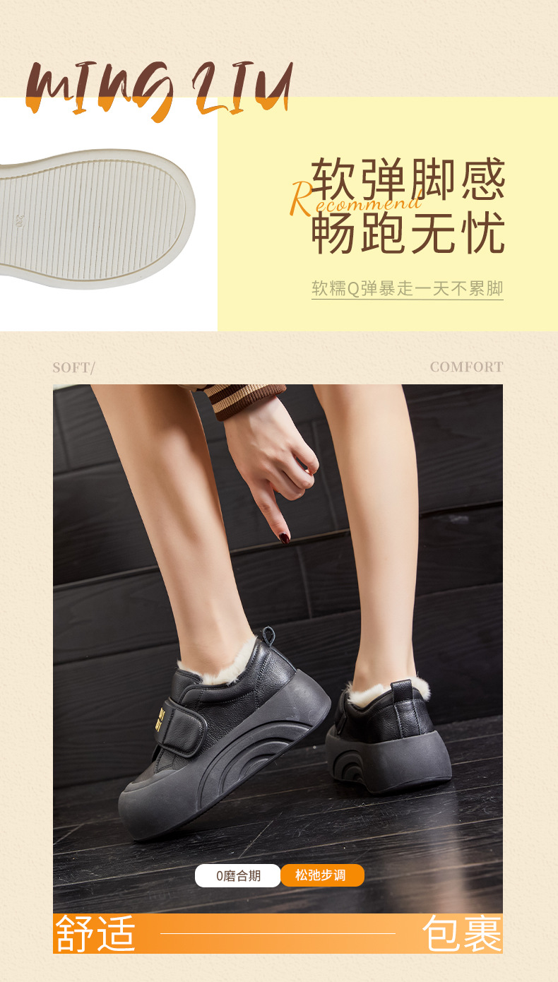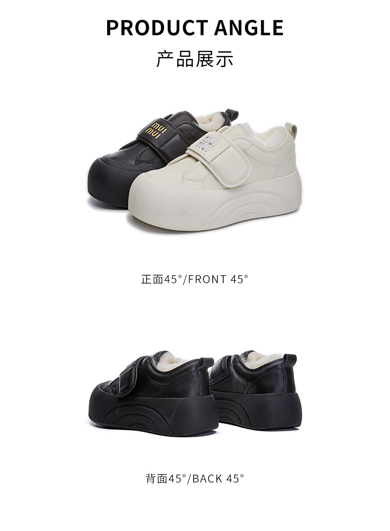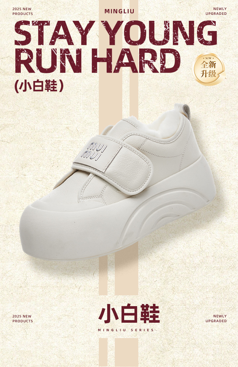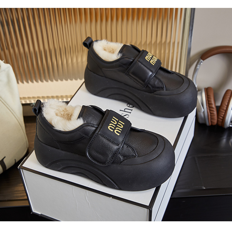 1층 소가죽 화이트 슈즈 여성용 2025 가을 겨울 신상 벨크로 스니커즈 여성 캐주얼 두꺼운 밑창 다용도 신발스토어 가기