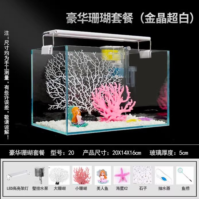 미친 수생 식물 초백색 유리 수조 조경 작은 거실 데스크탑 betta 물고기 금붕어 탱크 거북이 스트림 생태 탱크스토어 가기