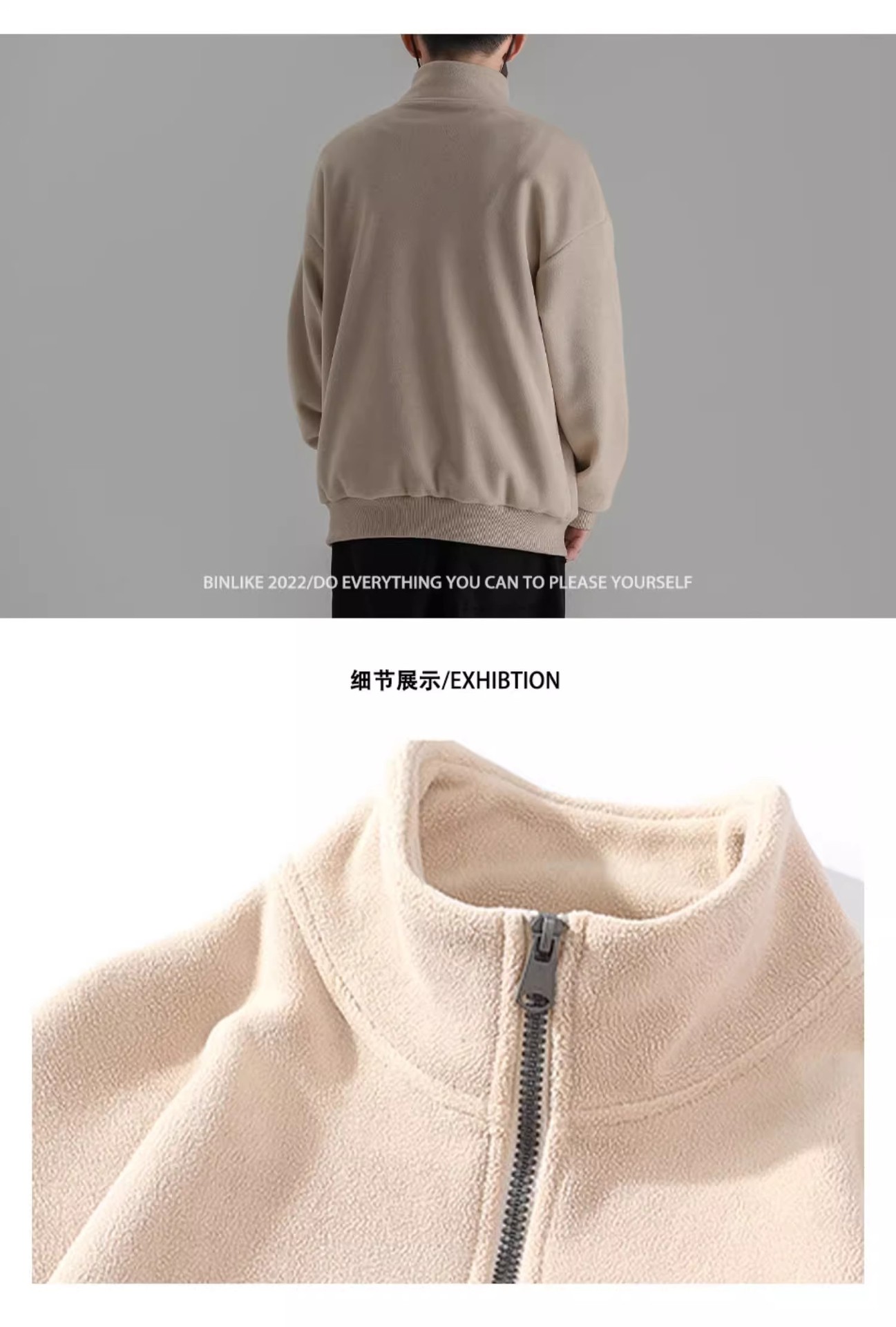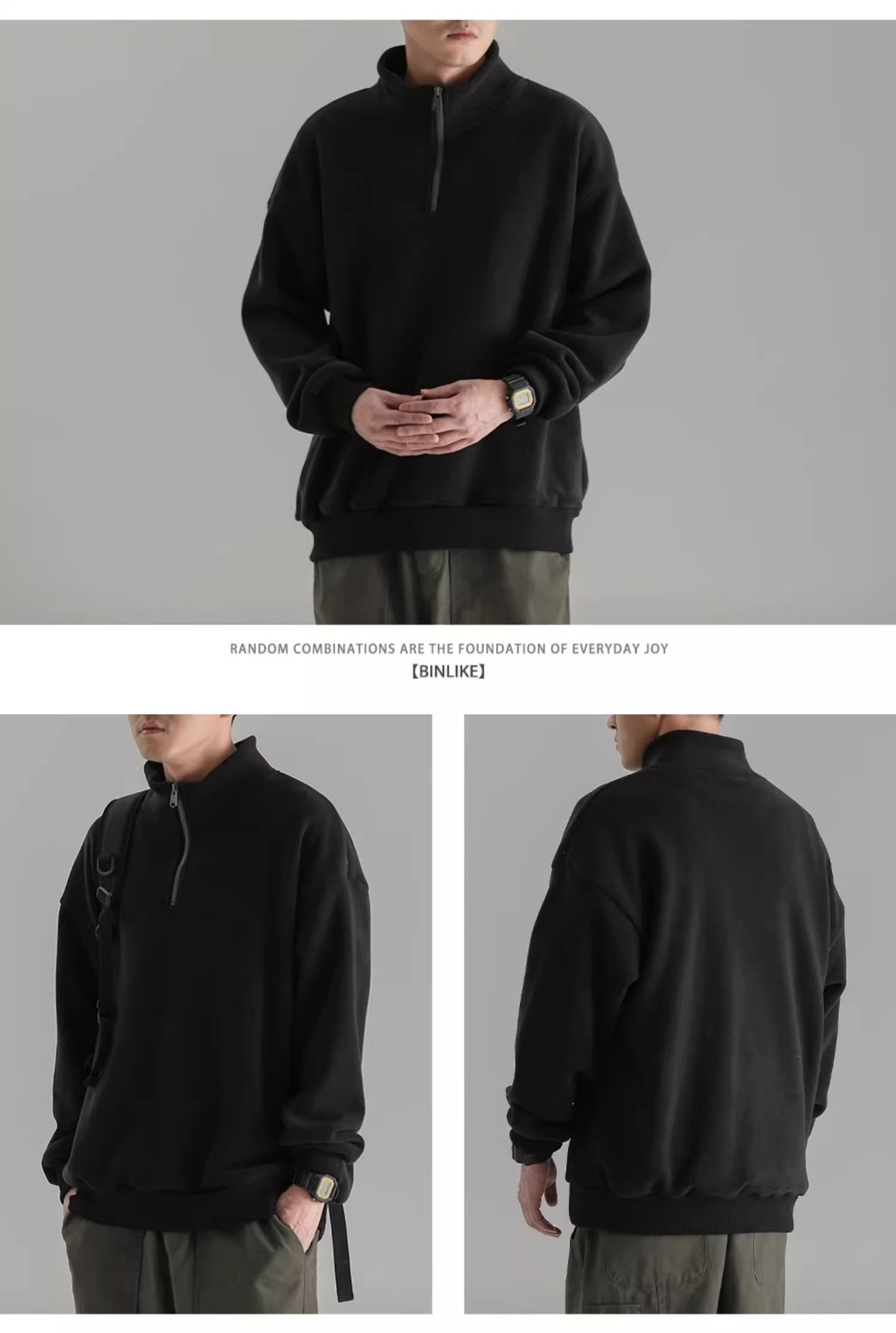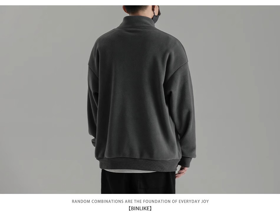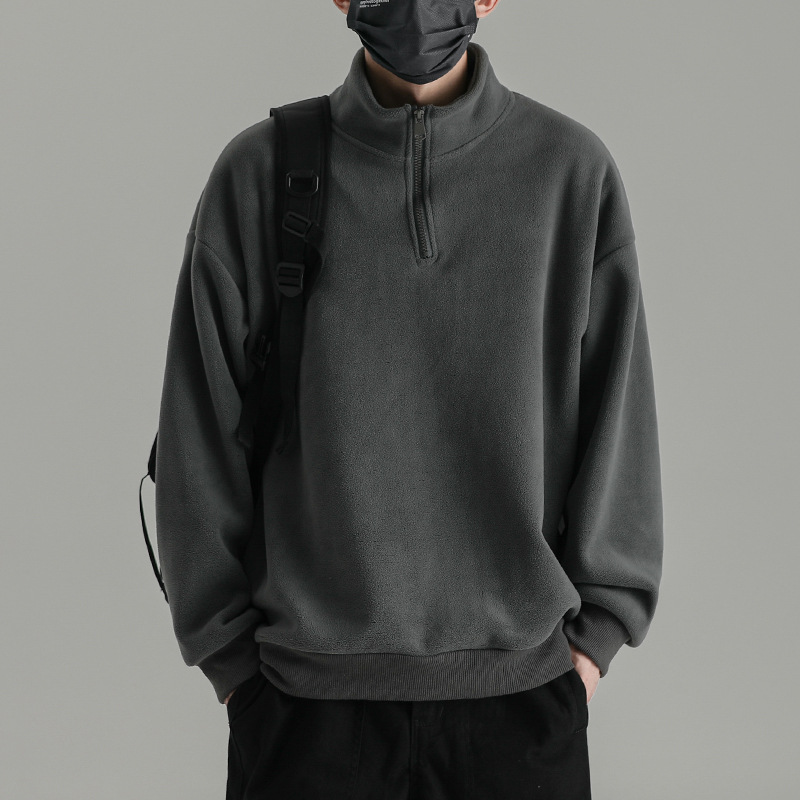 하프 지퍼 오스트리아 곡물 양털 칼라 스웨트 셔츠 남자 봄과 가을 일본 스타일 레트로 솔리드 컬러 겉옷 두꺼운 코트 양면 양털 탑스토어 가기