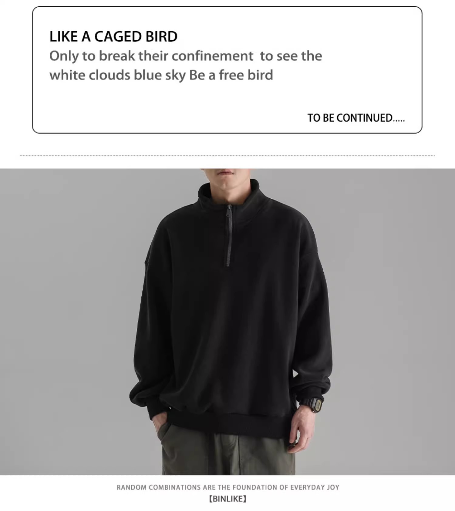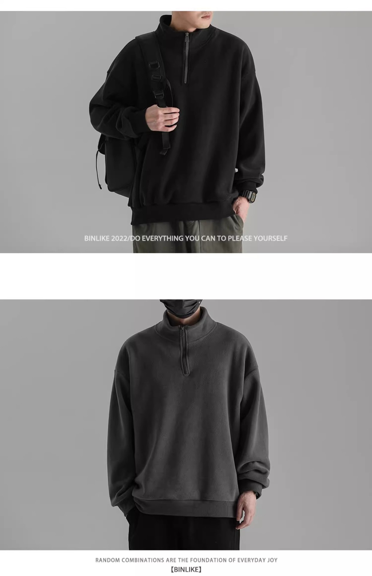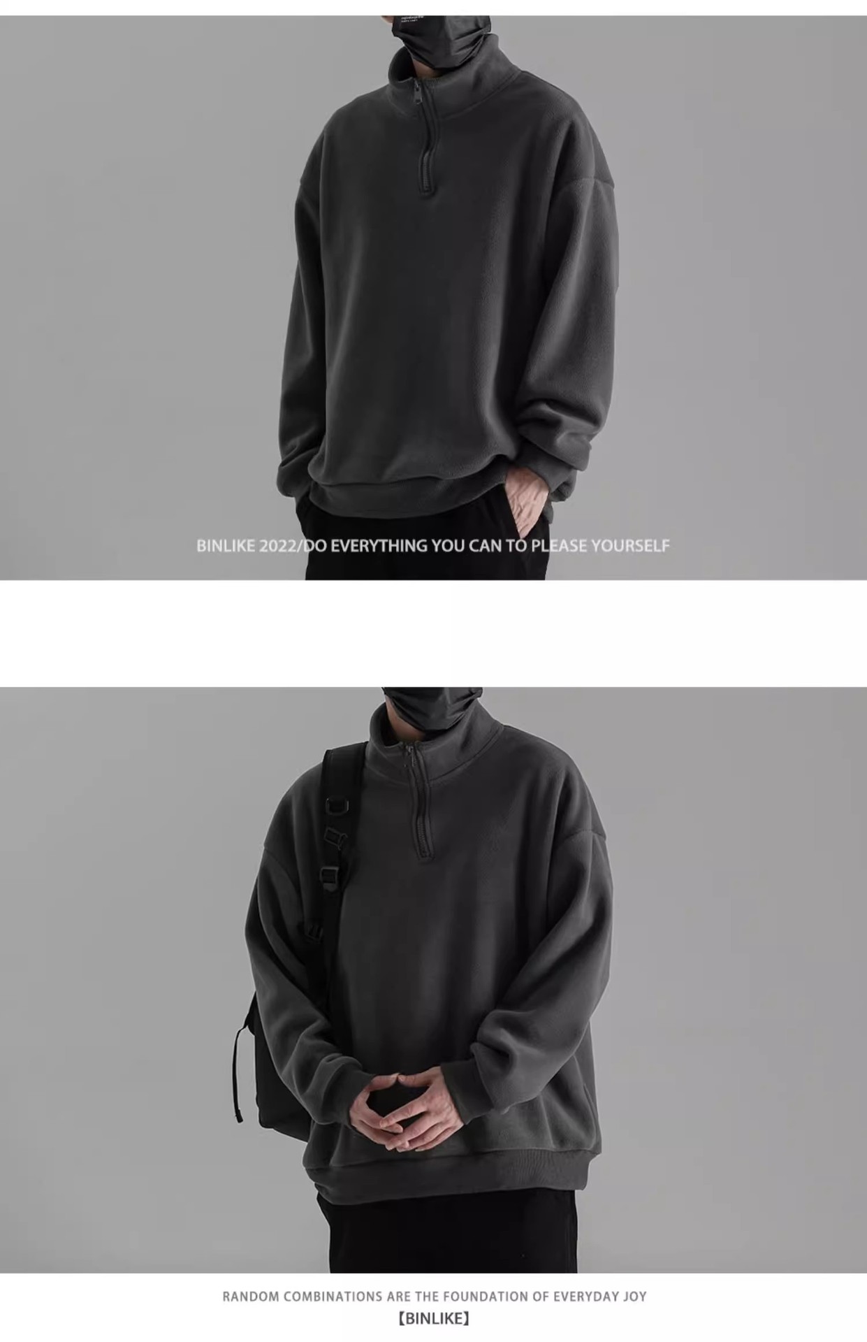 하프 지퍼 오스트리아 곡물 양털 칼라 스웨트 셔츠 남자 봄과 가을 일본 스타일 레트로 솔리드 컬러 겉옷 두꺼운 코트 양면 양털 탑스토어 가기