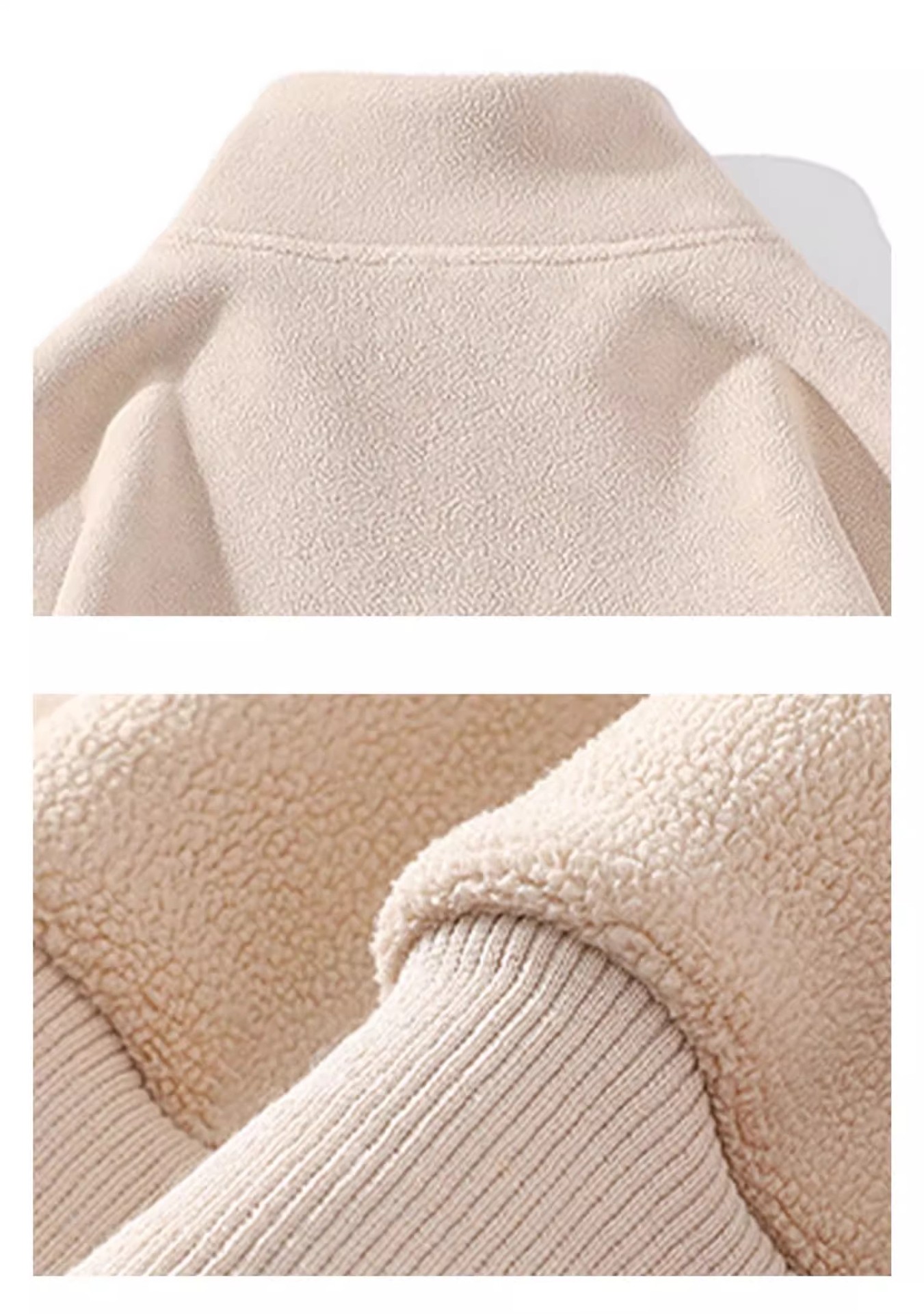 하프 지퍼 오스트리아 곡물 양털 칼라 스웨트 셔츠 남자 봄과 가을 일본 스타일 레트로 솔리드 컬러 겉옷 두꺼운 코트 양면 양털 탑