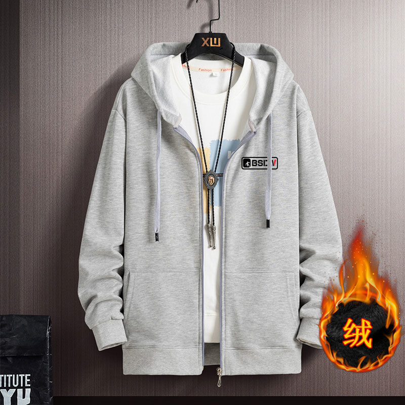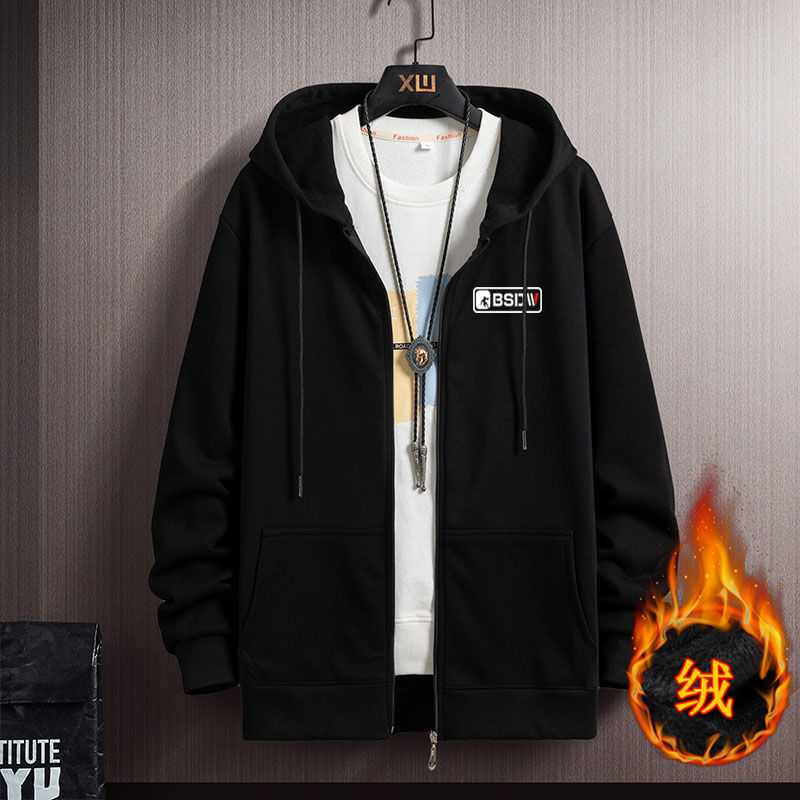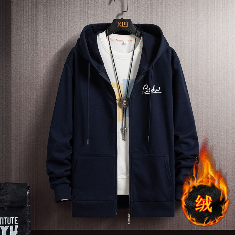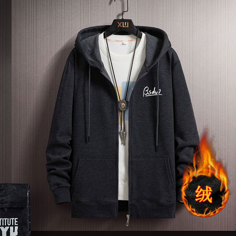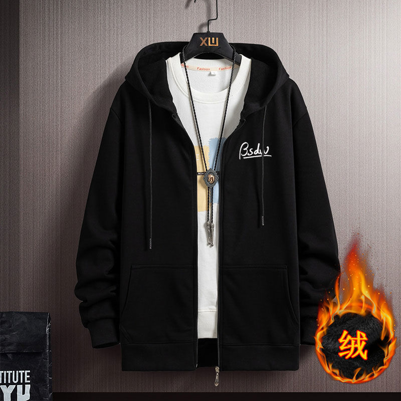 가을과 겨울 순면 플러스 사이즈 지퍼 스웨터 남자 기모 카디건 큰 느슨한 남자 후디 재킷스토어 가기