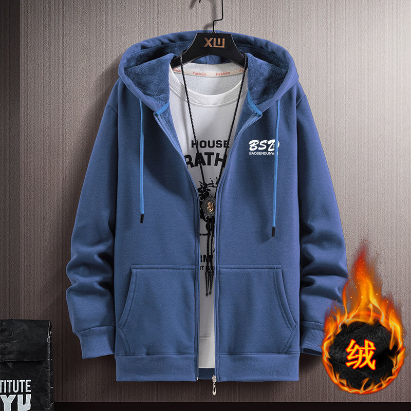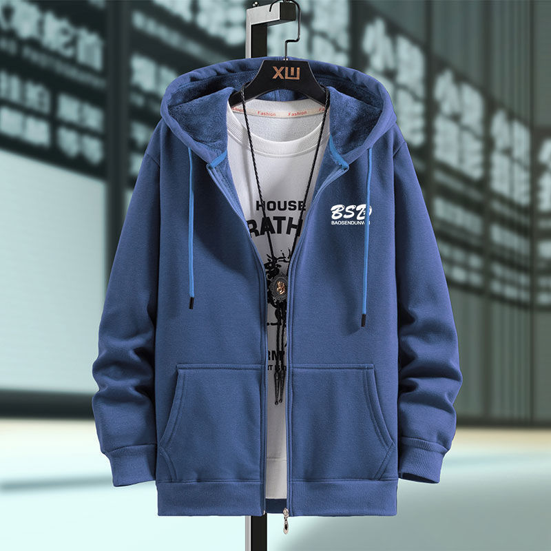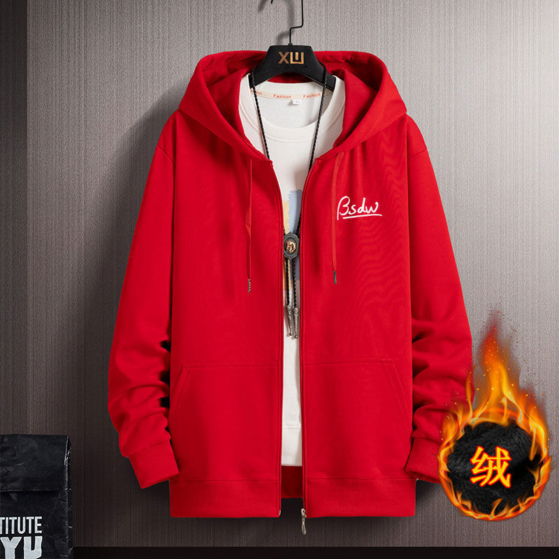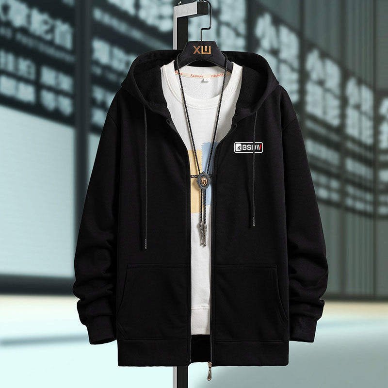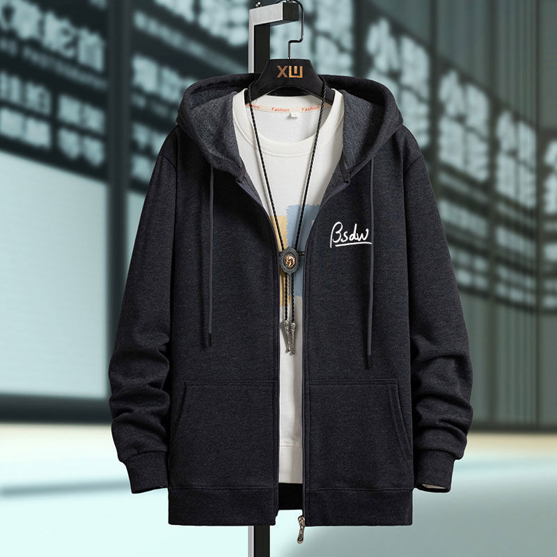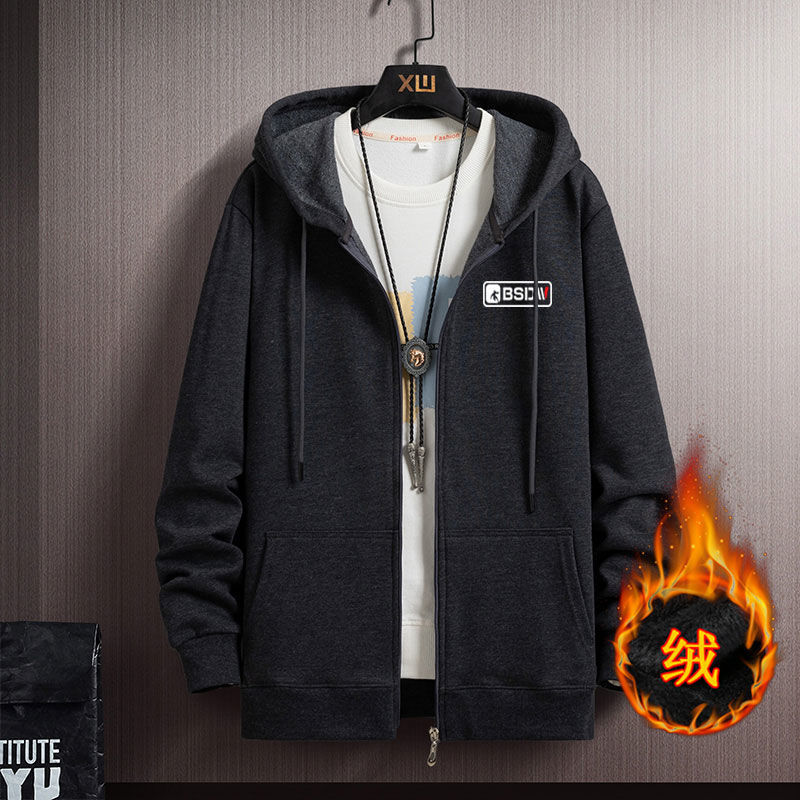 가을과 겨울 순면 플러스 사이즈 지퍼 스웨터 남자 기모 카디건 큰 느슨한 남자 후디 재킷스토어 가기