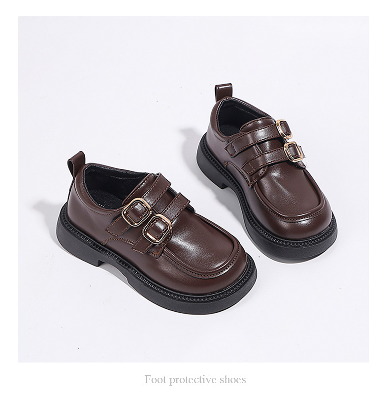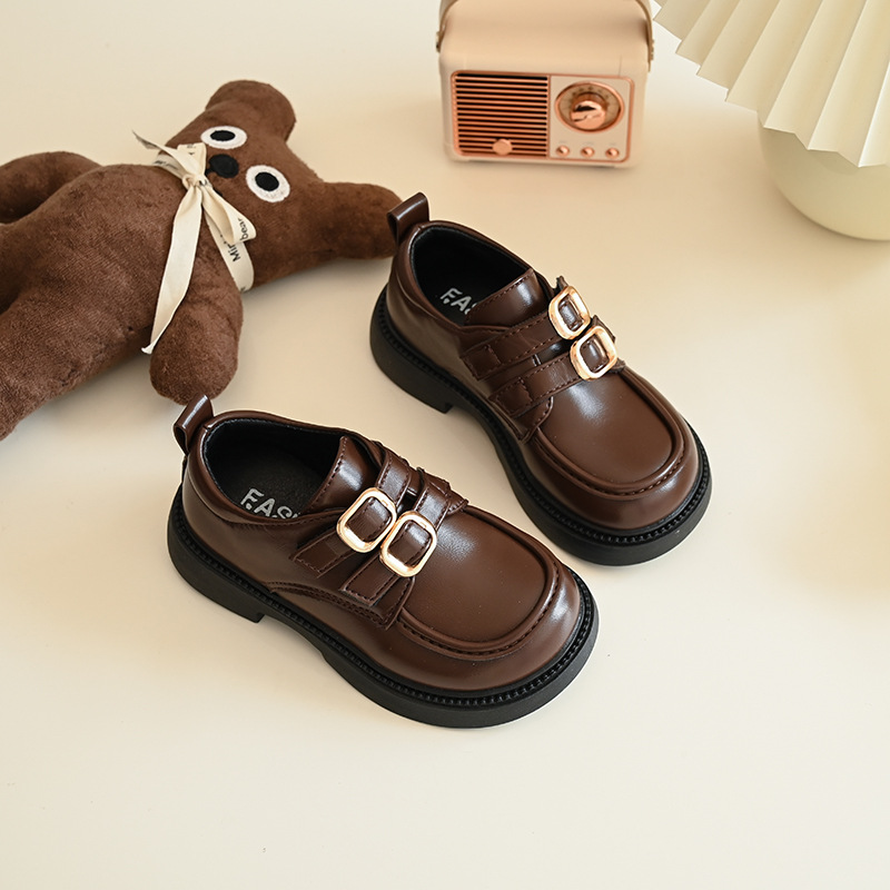 여자 작은 가죽 신발 2025 가을 새로운 어린이 부드러운 밑창 영국 스타일 신발 로퍼 메리 제인 공주 신발