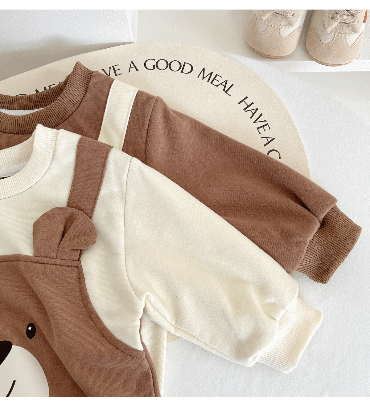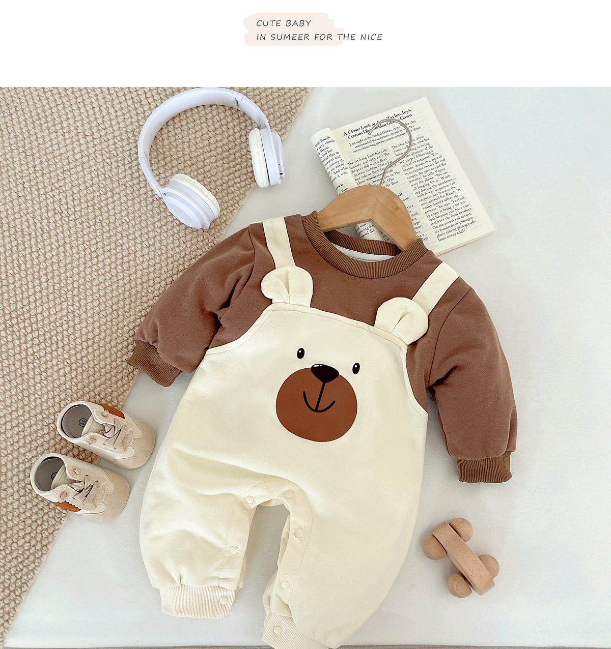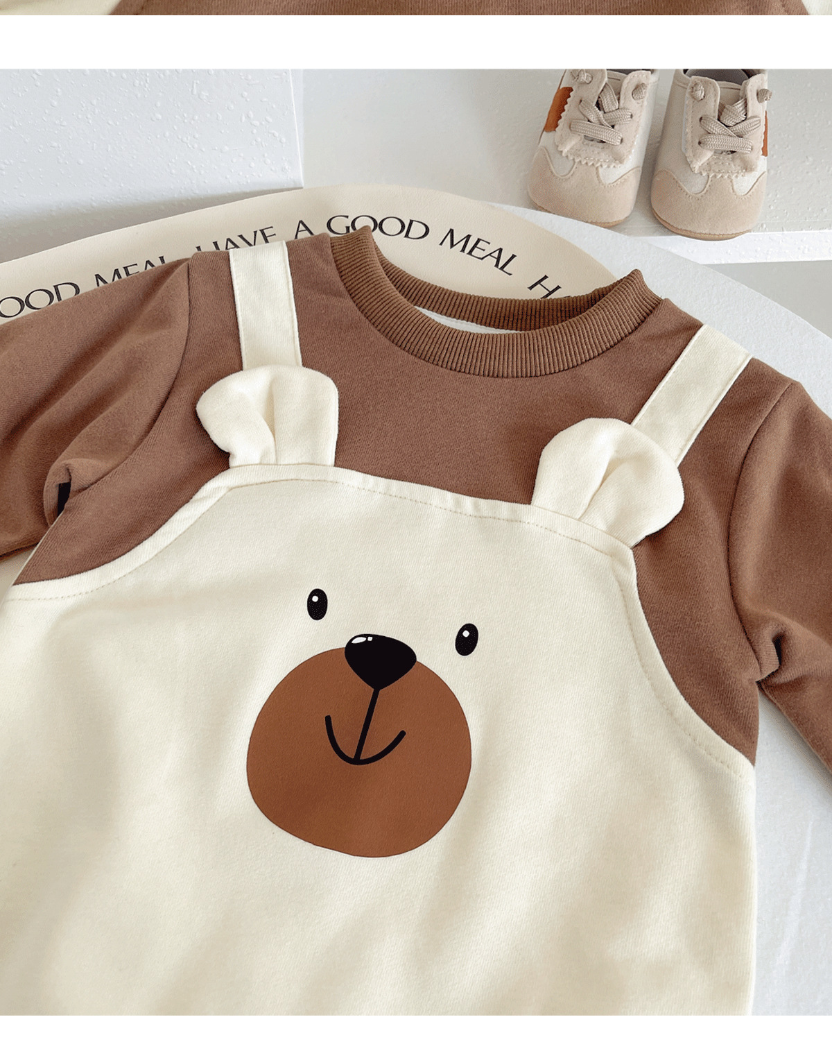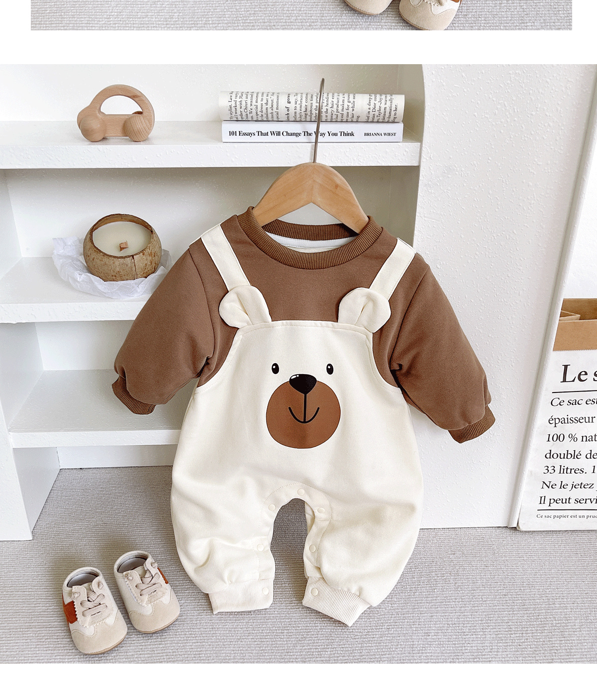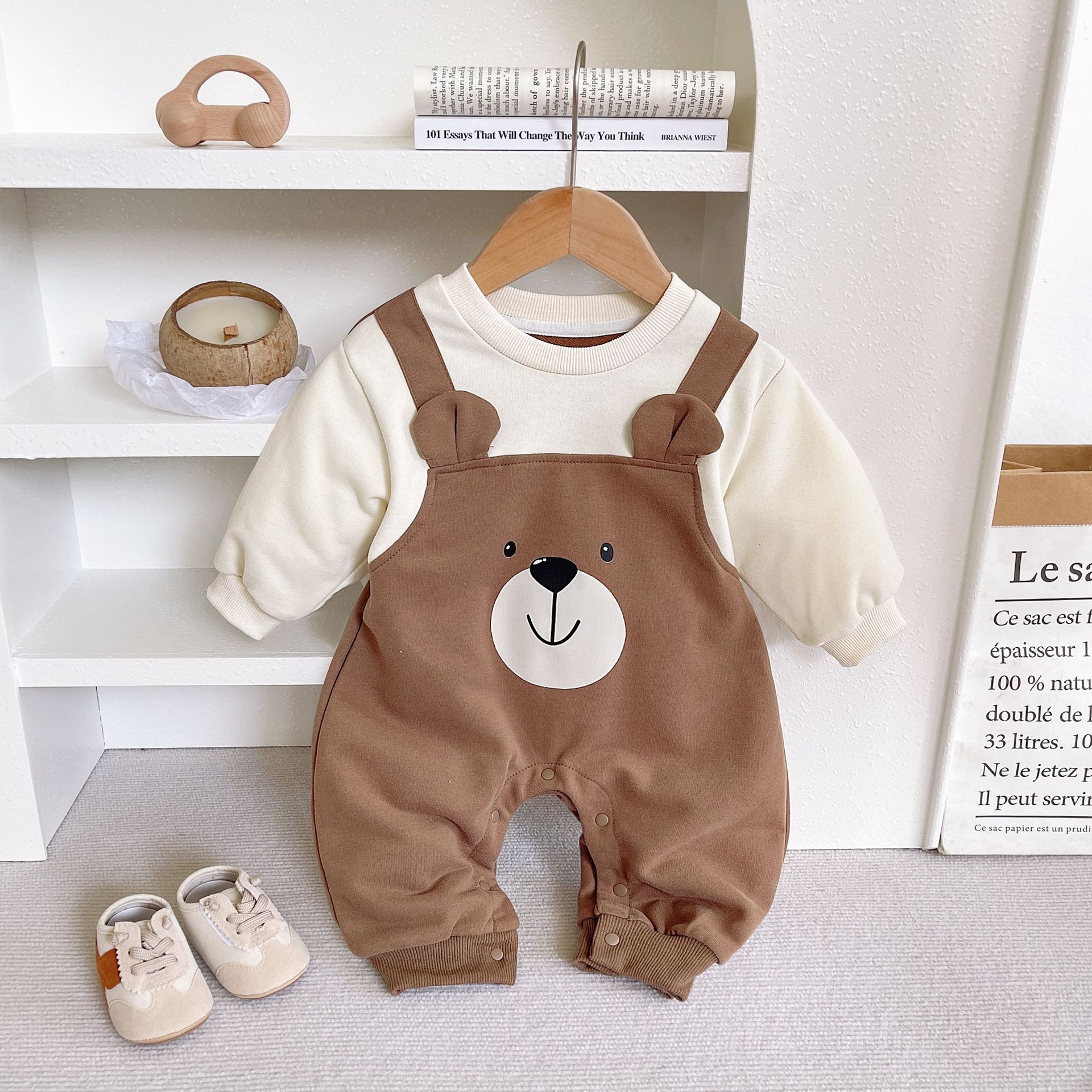 Ins 한국식 아기 가을과 겨울 곰 가짜 투피스 긴팔 몸 신생아 옷 귀여운 등반 옷