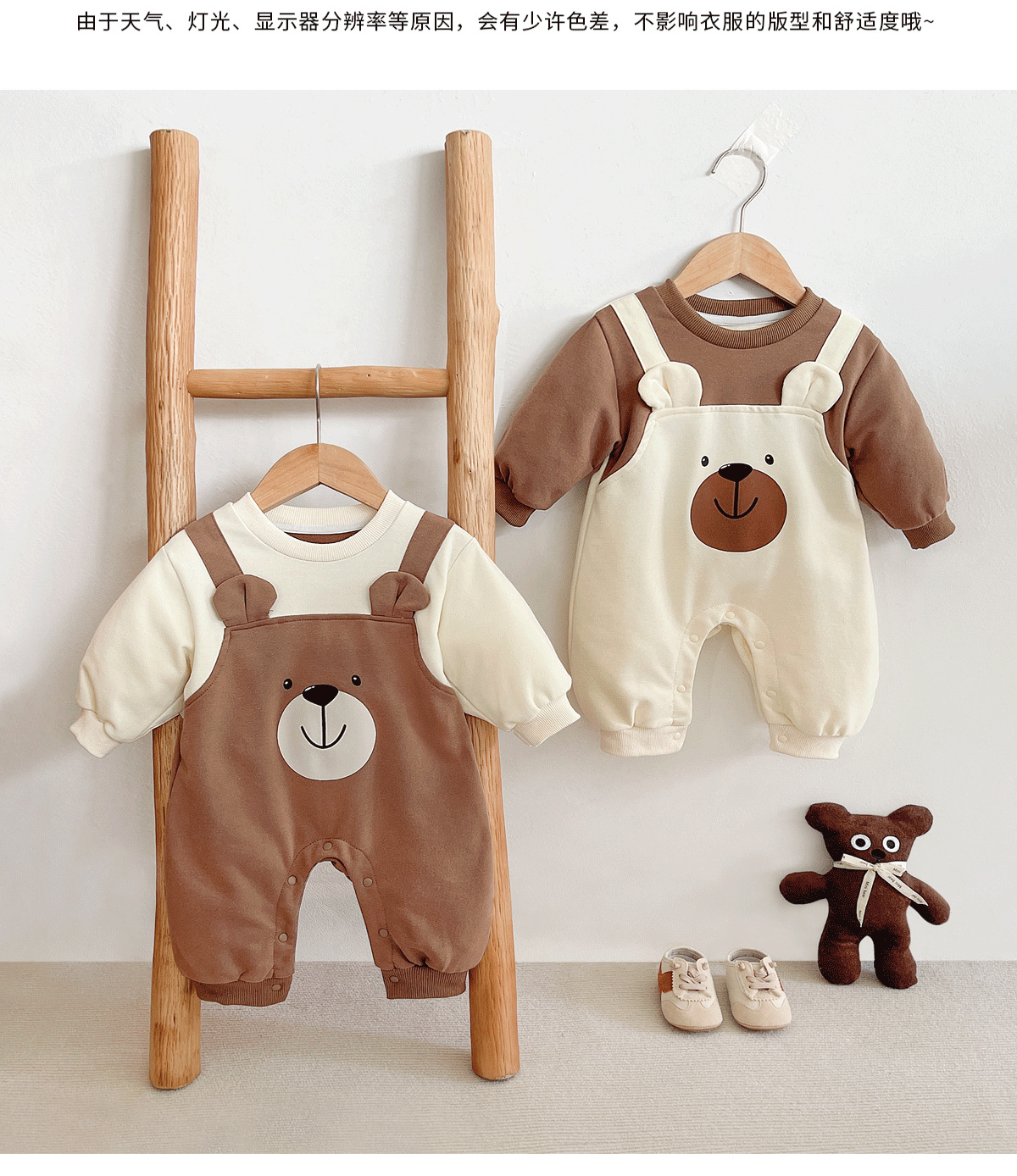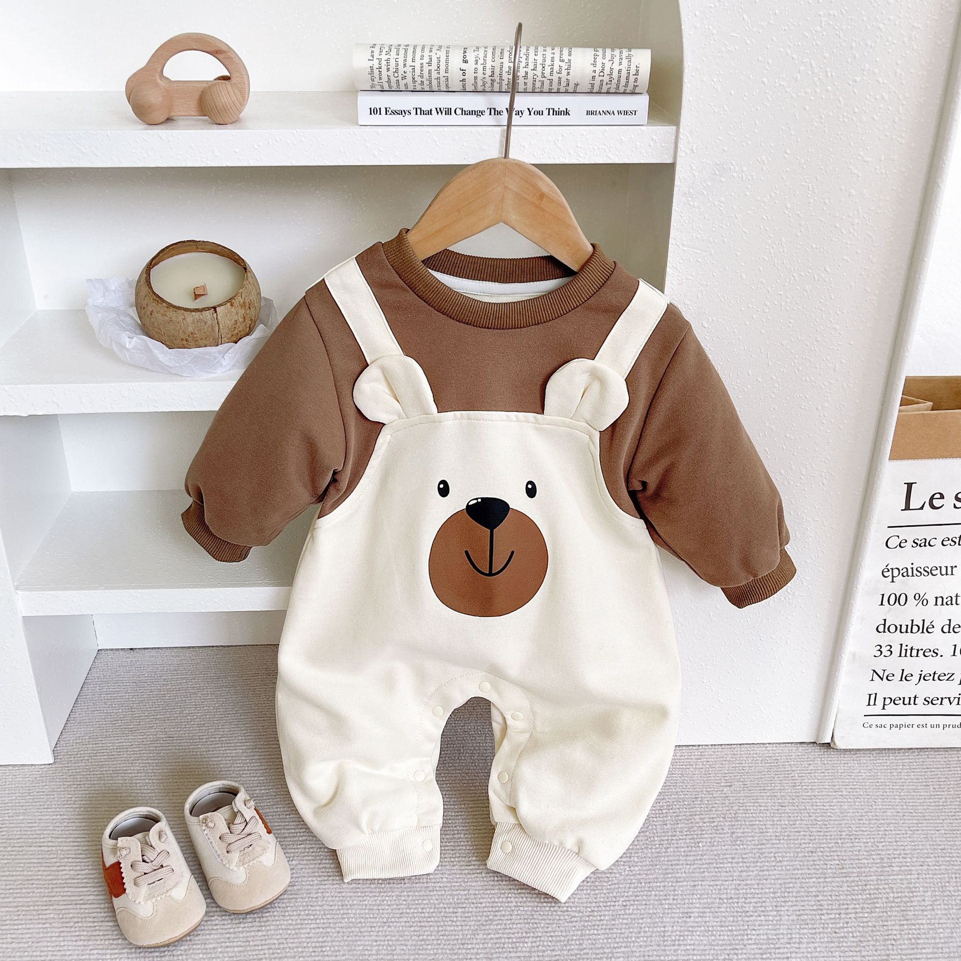 Ins 한국식 아기 가을과 겨울 곰 가짜 투피스 긴팔 몸 신생아 옷 귀여운 등반 옷스토어 가기