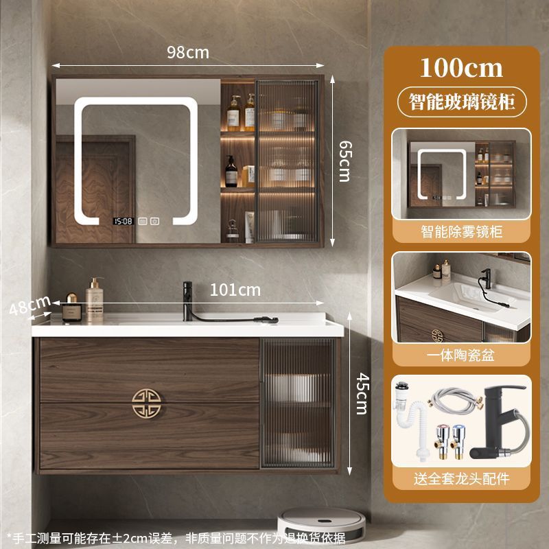 욕실 중국 스타일 세면대 현대 세면대 세척 세트 스마트 단단한 나무 세라믹 통합 욕실 캐비닛 조합스토어 가기