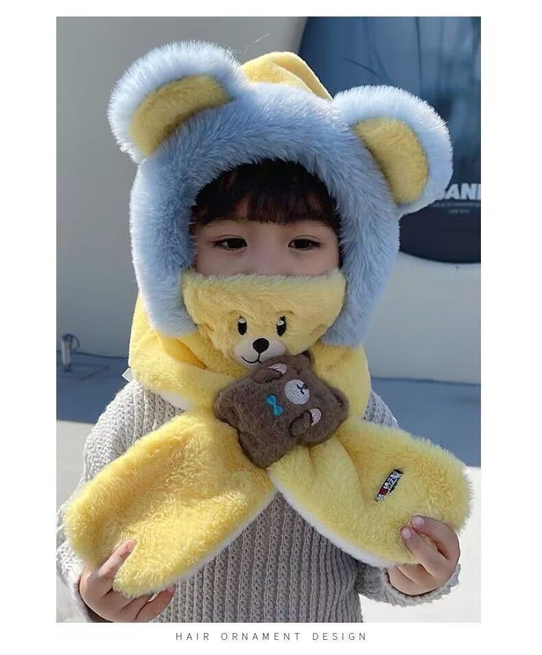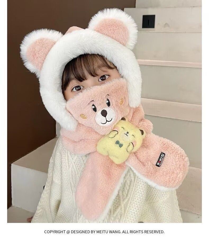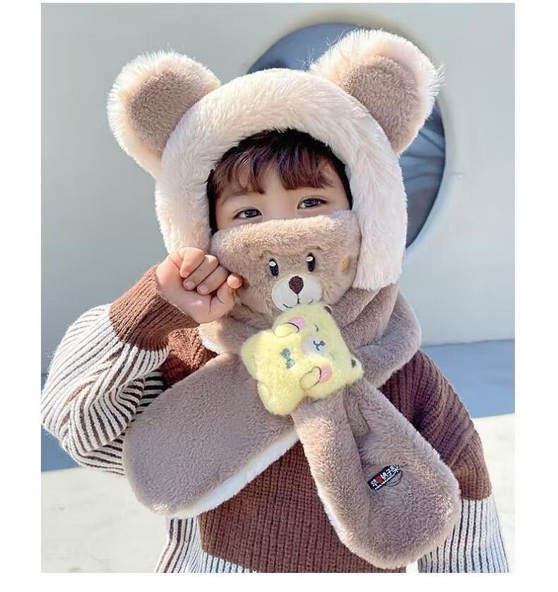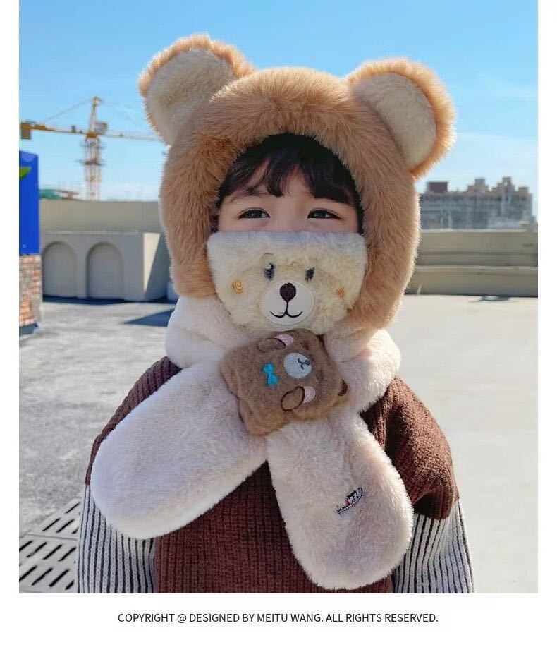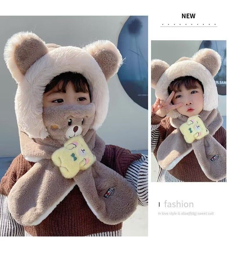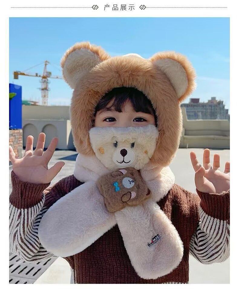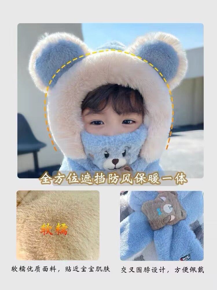 어린이 모자와 스카프 통합 겨울 소년 소년과 소년의 푹신한 모자 방풍 방탄 귀 마스크 이동식 3 피스 세트