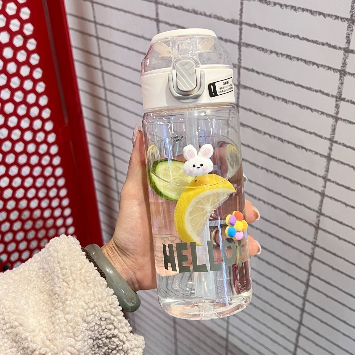 식품 학년 탄성 뚜껑 새로운 밀짚 플라스틱 컵 고온 저항하는 간단한 작업 남성과 여성 학생 컵 휴대용 차