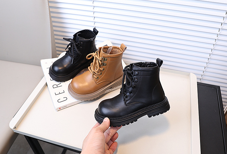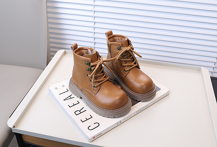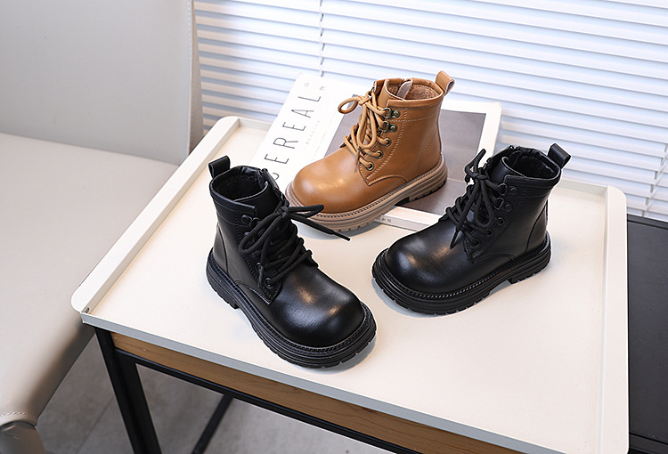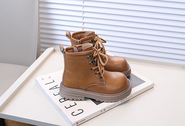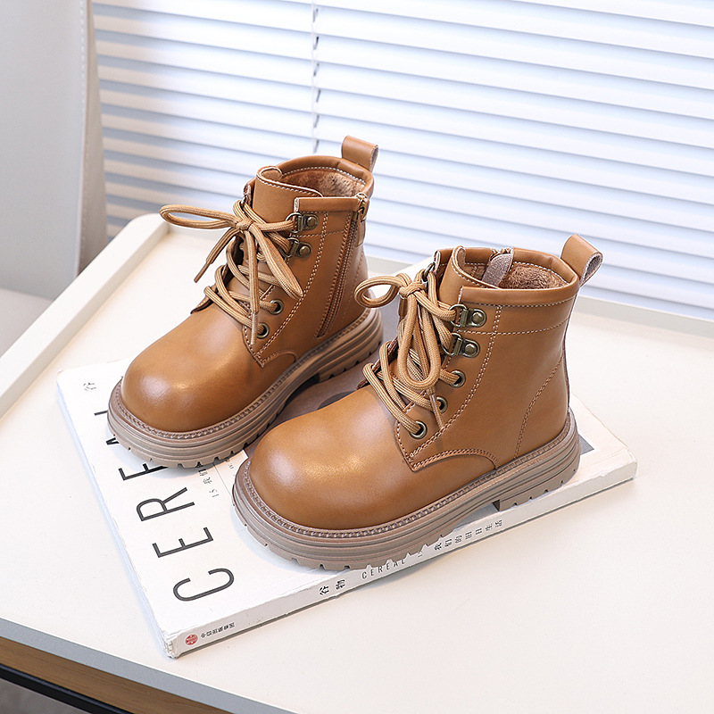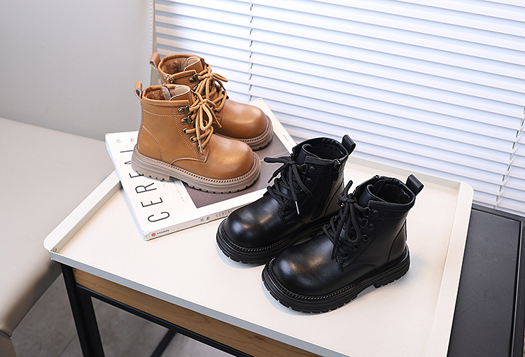 어린이 신발 복고풍 소년 두 면화 따뜻한 마틴 부츠 2024 가을과 겨울 소녀 작은 가죽 부츠 패션 다목적 짧은 부츠스토어 가기