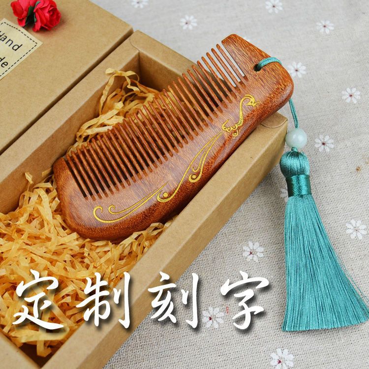 선물 상자 레터링 천연 샌달 우드 마사지 나무 빗 정전기 방지 복고풍 긴 머리 비 뿔 복숭아 나무 유캉스토어 가기