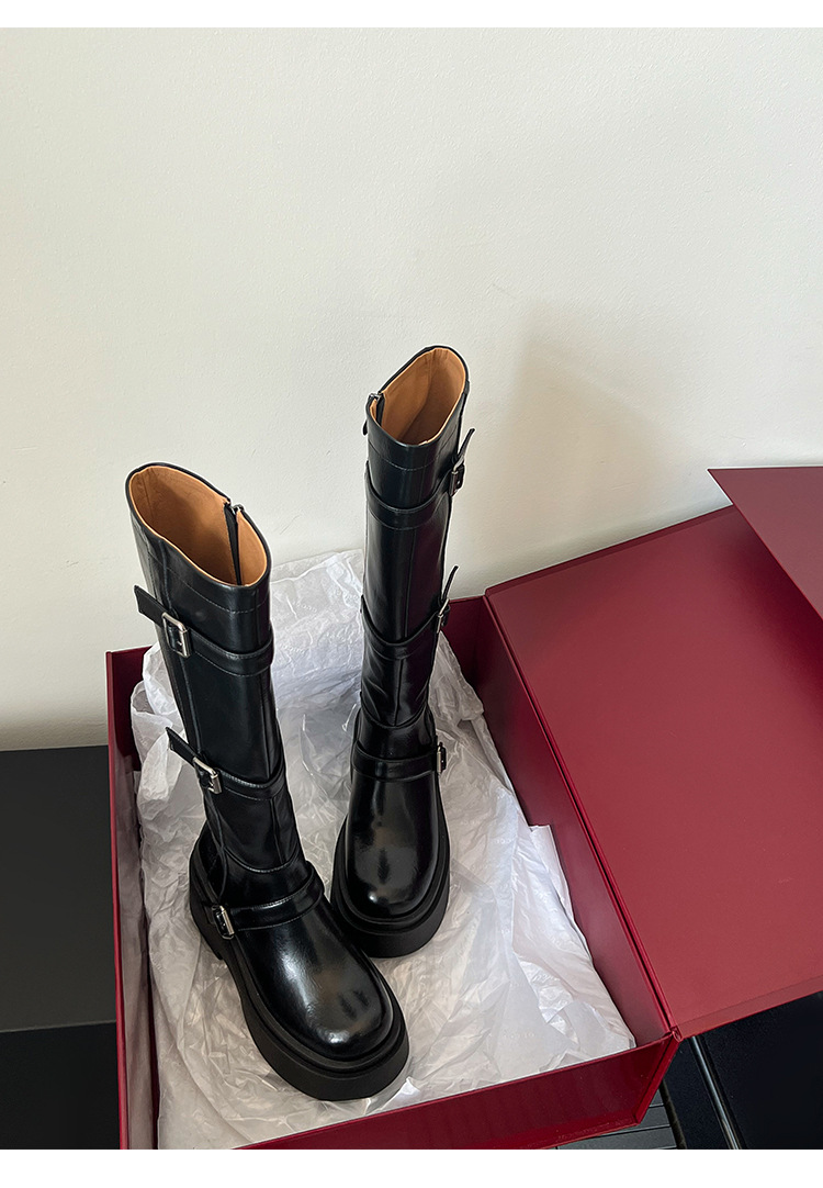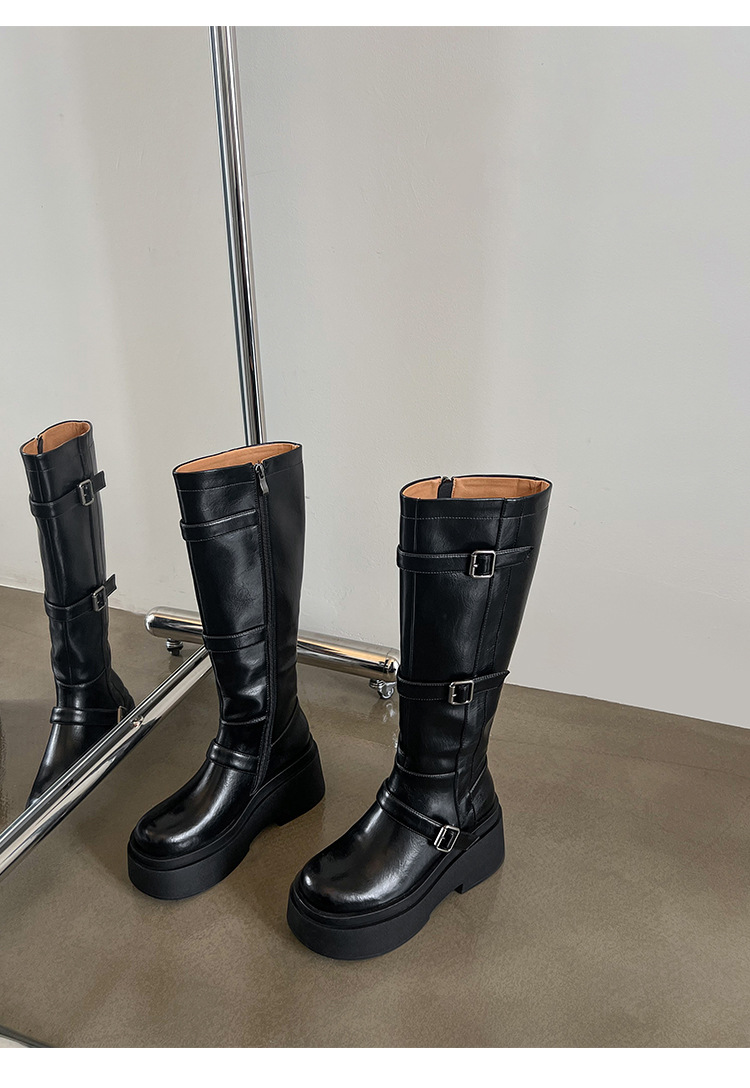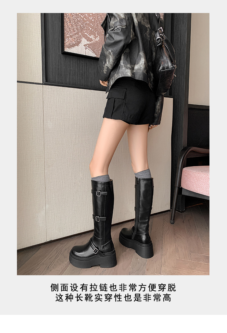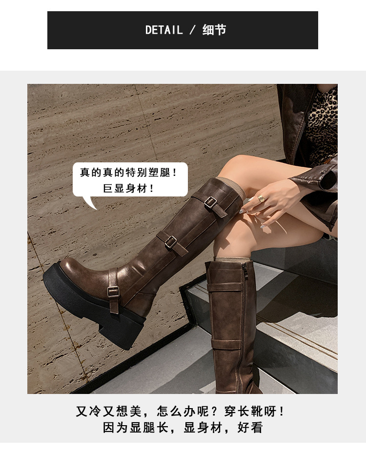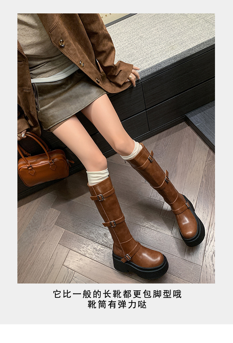 가을 아름다움 높이 증가 두꺼운 밑창 기사 부츠 여성 탄성 슬리밍 가을 및 겨울 높은 튜브 두꺼운 다리 부츠 대형 튜브 작은스토어 가기