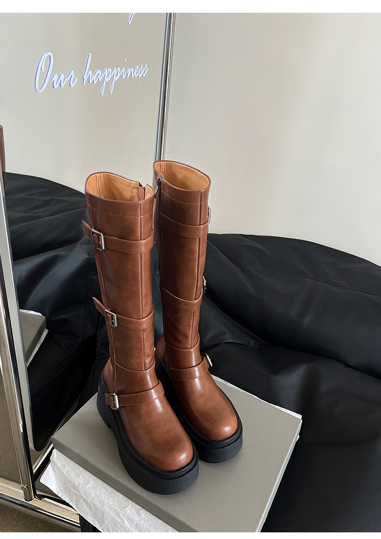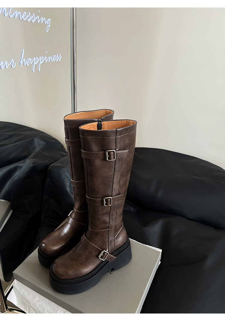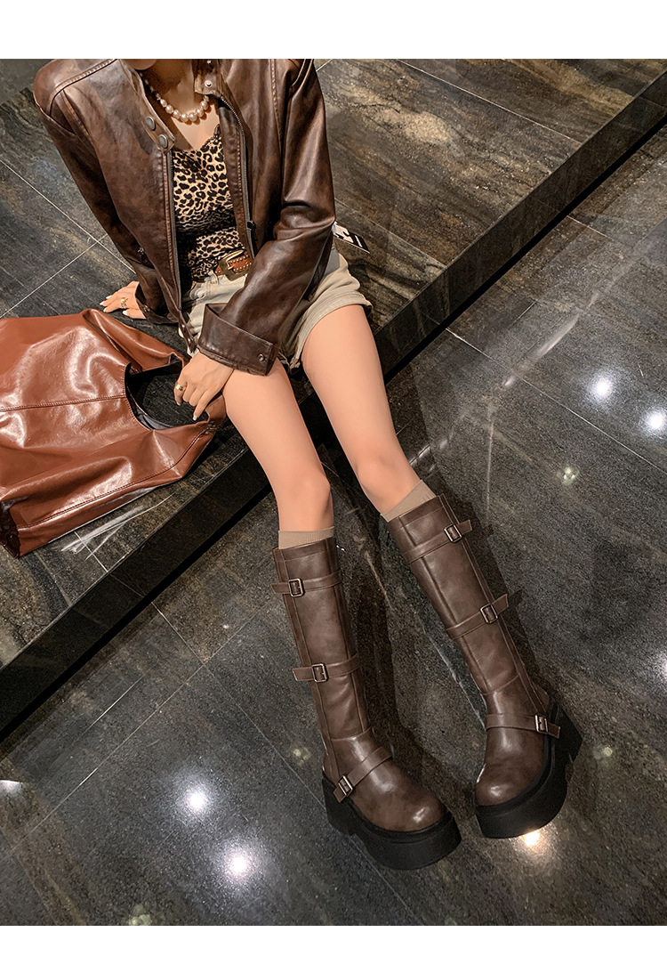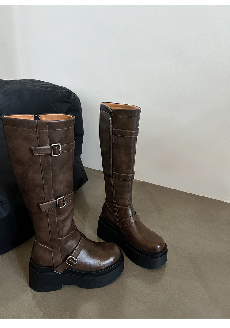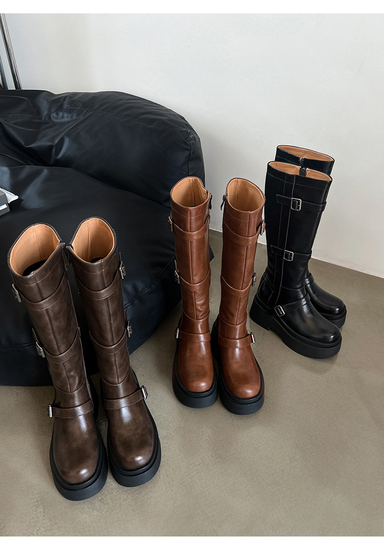 가을 아름다움 높이 증가 두꺼운 밑창 기사 부츠 여성 탄성 슬리밍 가을 및 겨울 높은 튜브 두꺼운 다리 부츠 대형 튜브 작은스토어 가기
