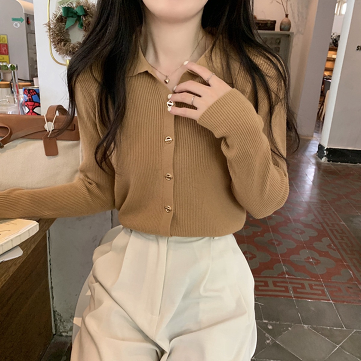 폴로 칼라 이너 레이어드 스웨터 여성 가디건 2025 신작 봄, 가을 하이 엔드 시크 유니크 탑스토어 가기