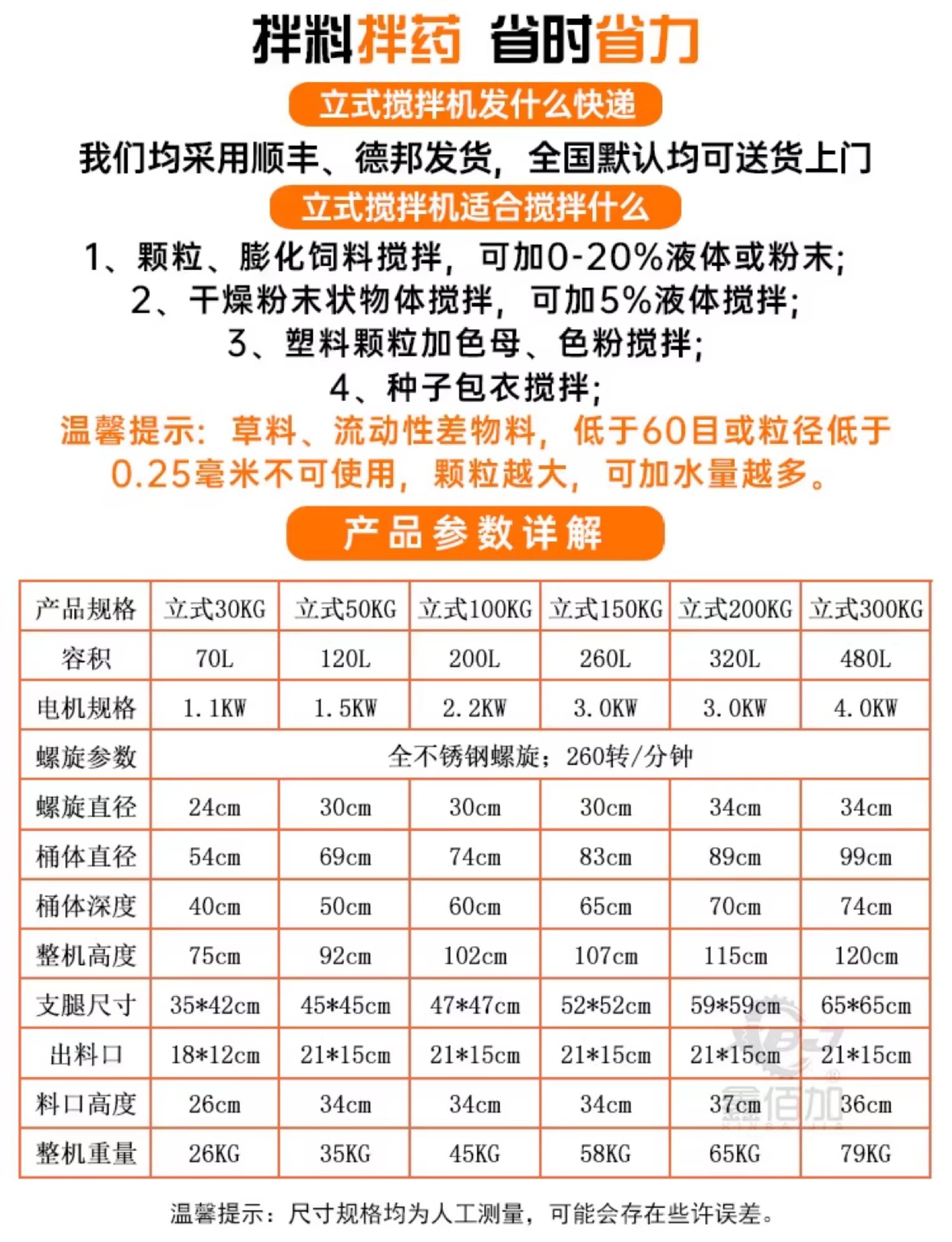 수직 사료 믹서 건조하고 젖은 플라스틱 과립 믹서 가구 작은 투약 혼합 씨앗 드레싱 기계스토어 가기