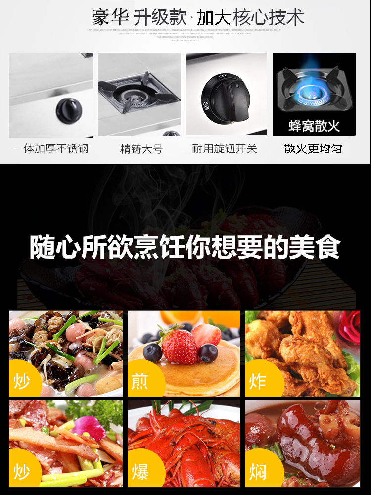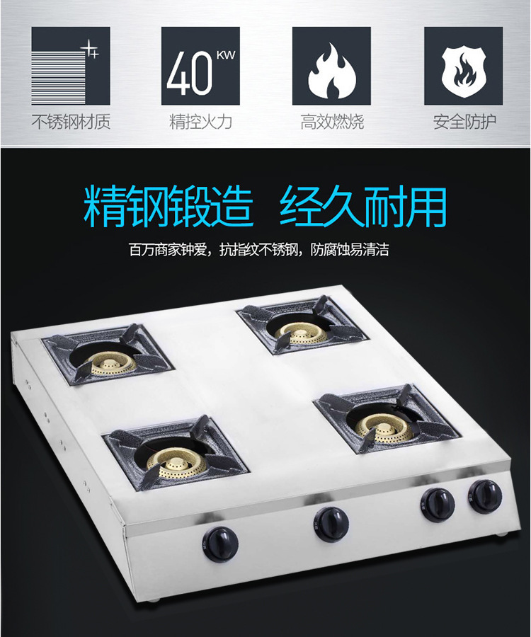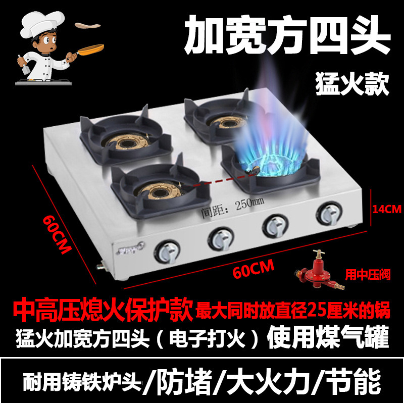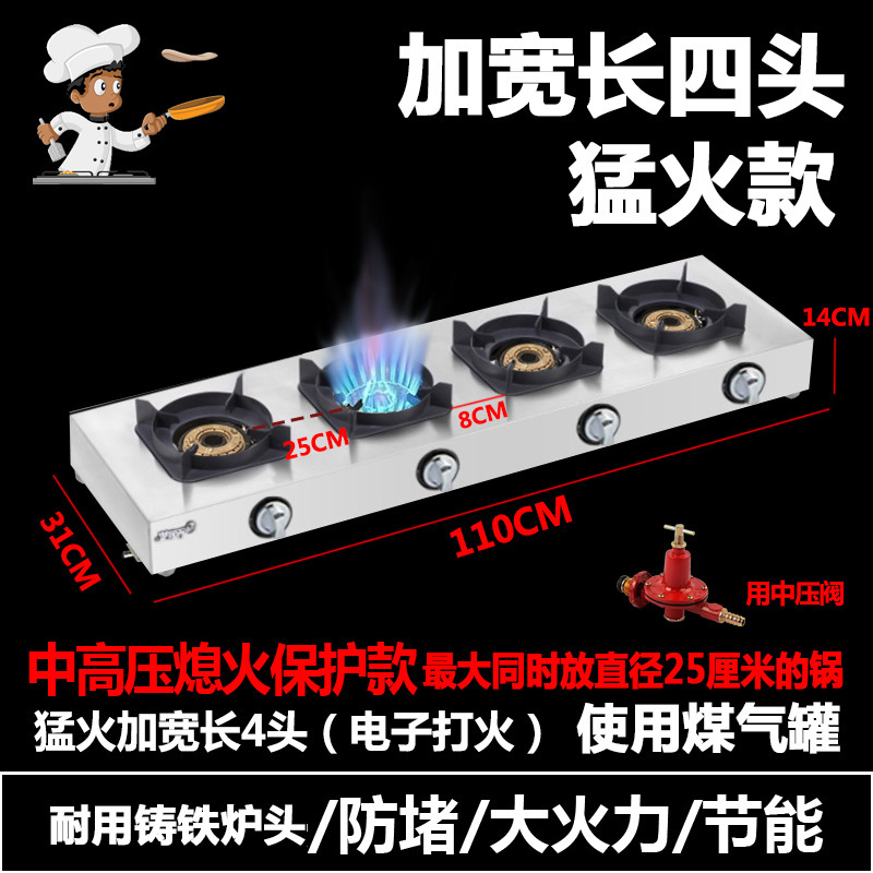 • 4개의 머리가 있는 강한 불(정지 보호 기능 포함) 중압 및 고압 모델, 액화 가스