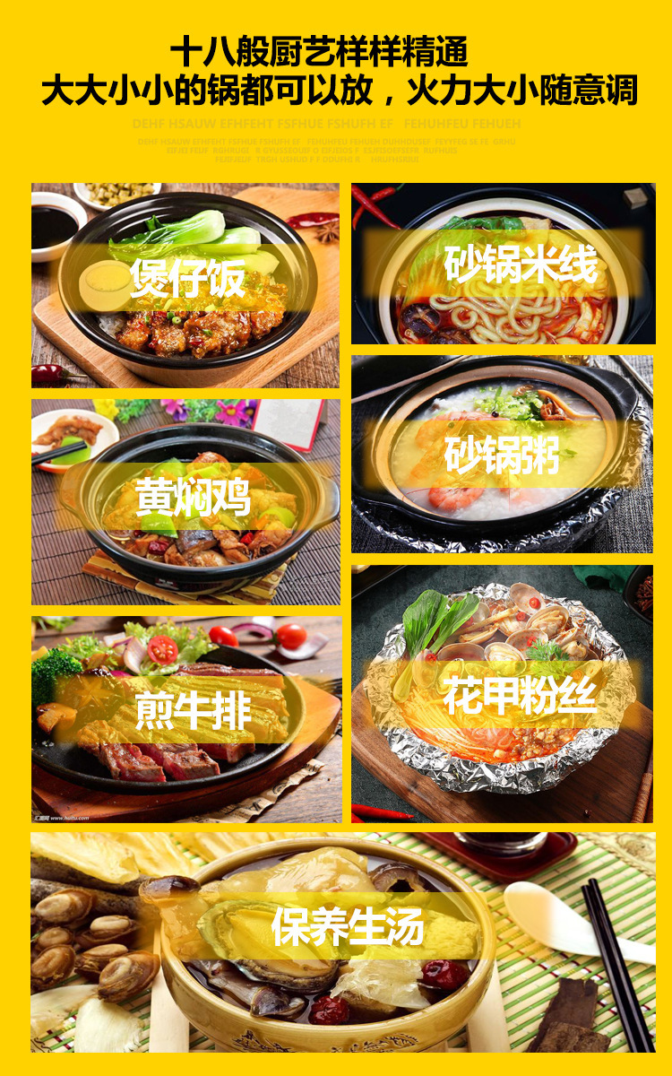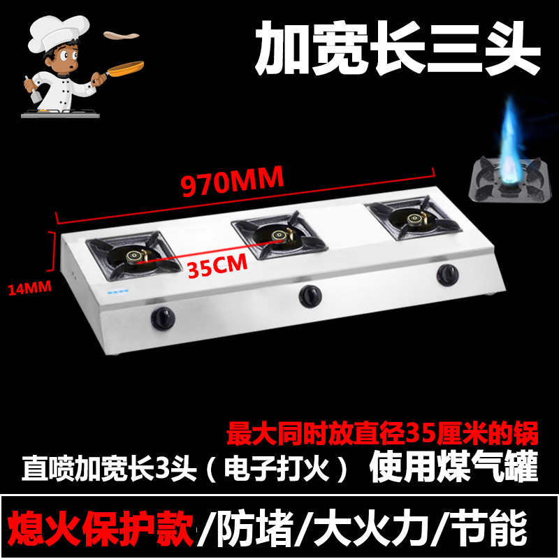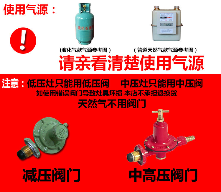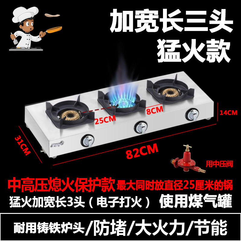 • 3개의 머리가 있는 강한 불(정지 보호 기능 포함) 중압 및 고압 모델, 액화 가스