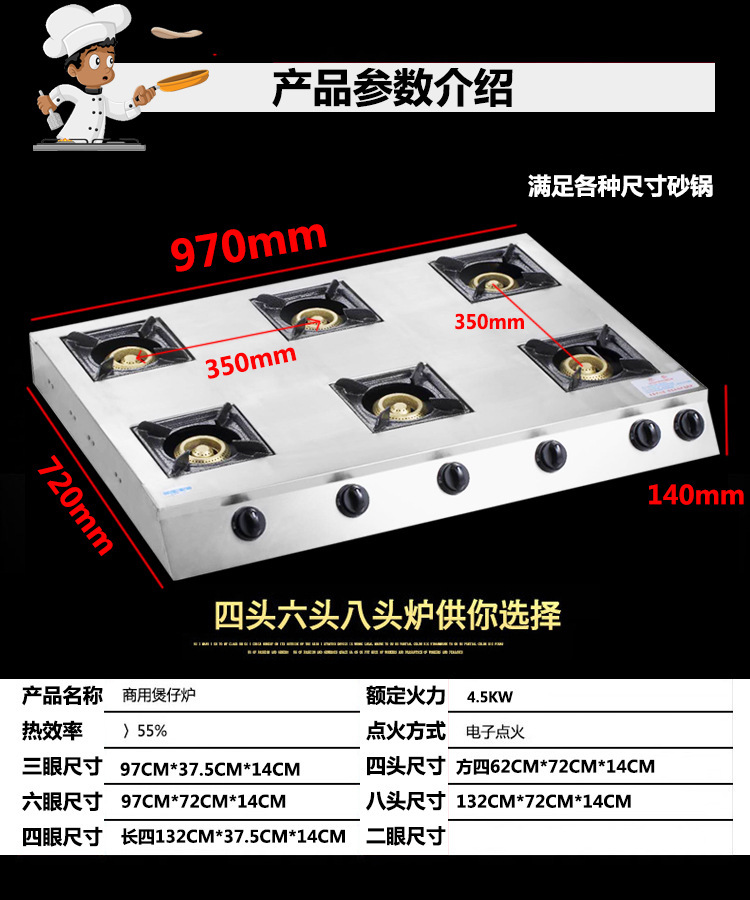 요리 스토브 상업 다공성 가스 스토브 액화 가스 3468-눈 멀티 헤드 캐서롤 천연 가스 스토브 468-헤드 멀티 아이