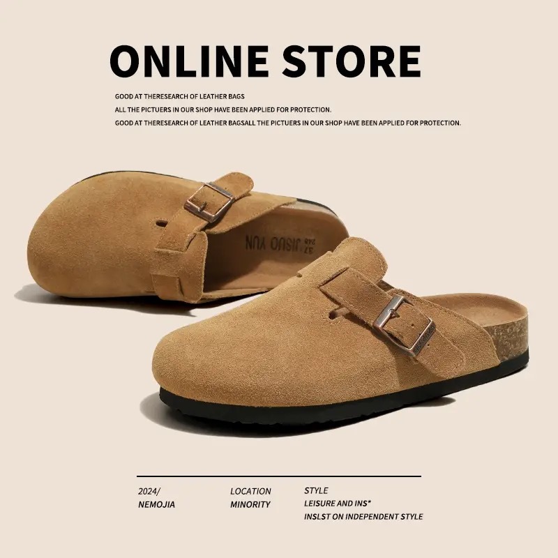 2024 새로운 두꺼운 밑창 Birkenan 신발 여성용 복고풍 프랑스 스타일 Baotou 하프 슬리퍼 유행 Ins 미끄럼 방지 게으른 신발