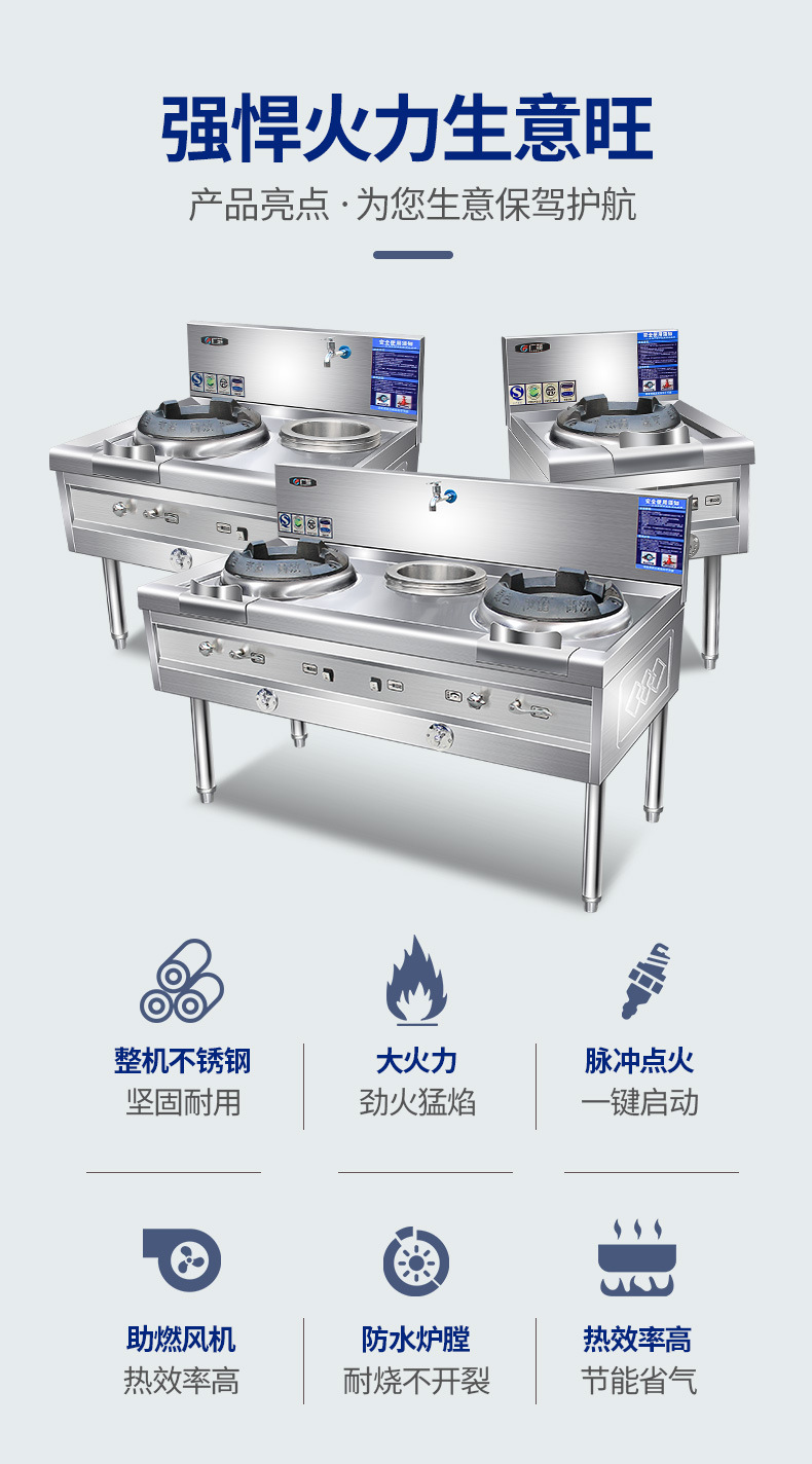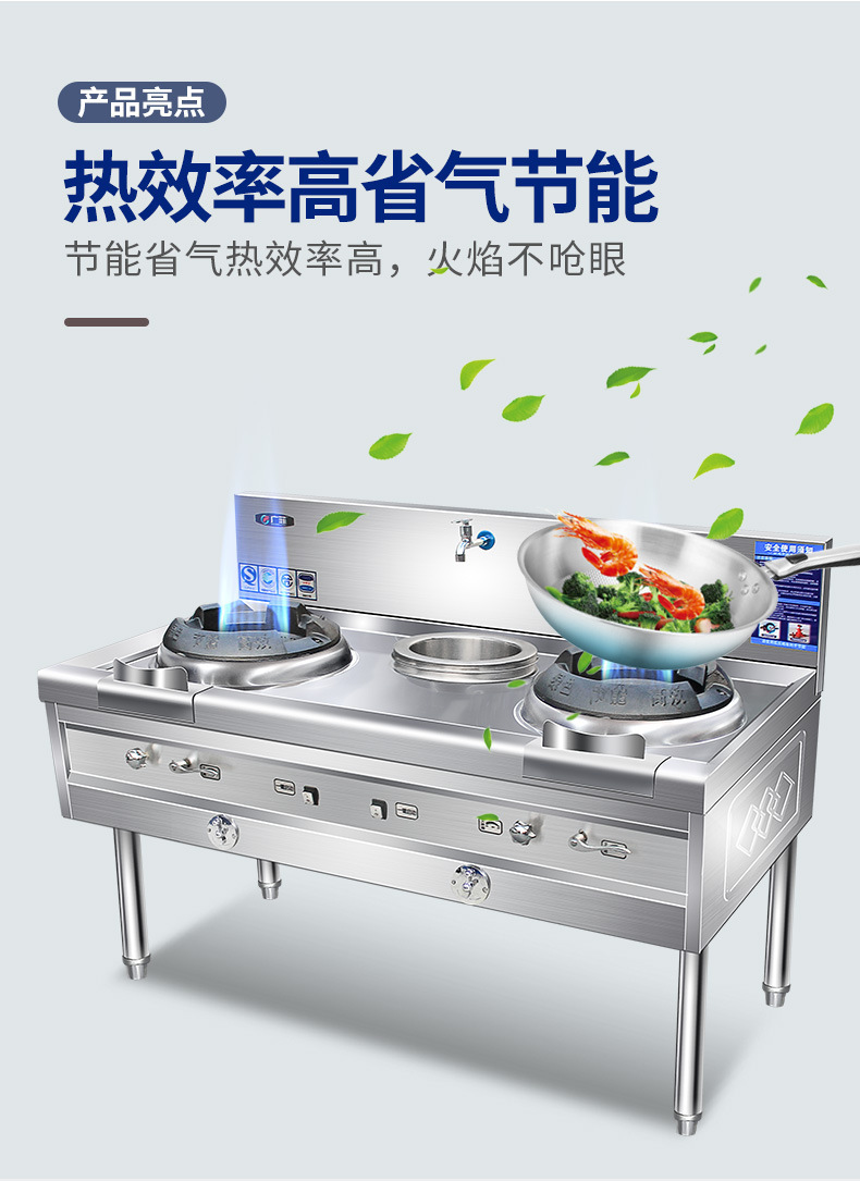 스테인레스 스틸 에너지 절약 가스 치열한 스토브 싱글 및 더블 스토브 가스 스토브 주방 천연 액화 가스 스토브 호텔 상업용 스토브