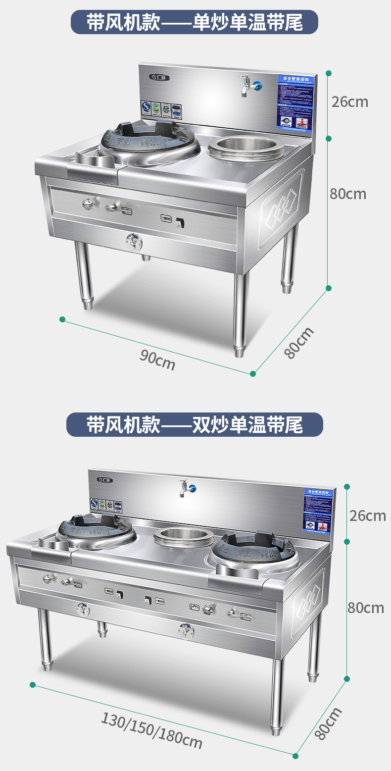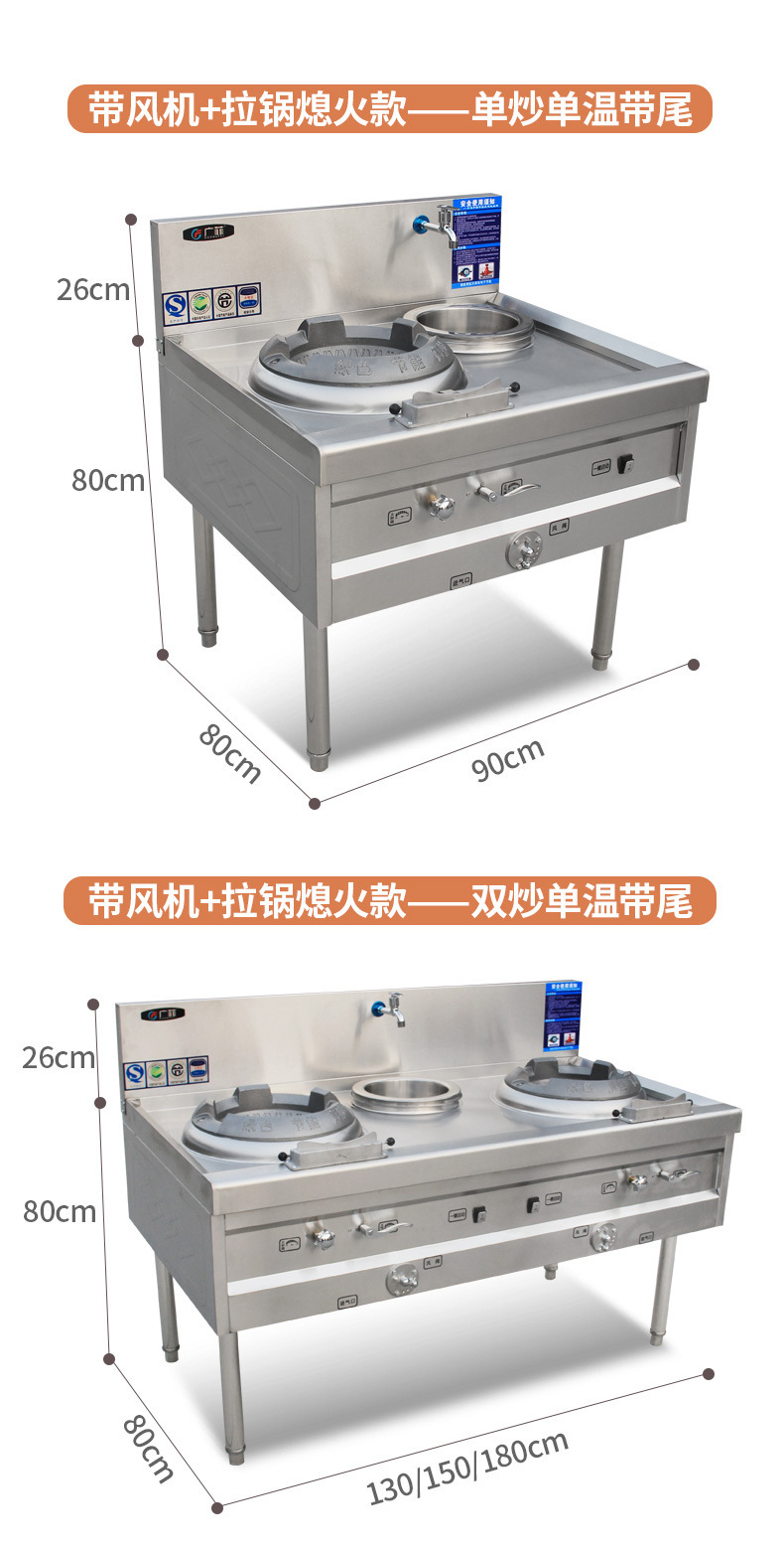 • 화염 차단 기능이 있는 모델 90*80*80, 1회 튀김 및 1회 온도, 팬 포함