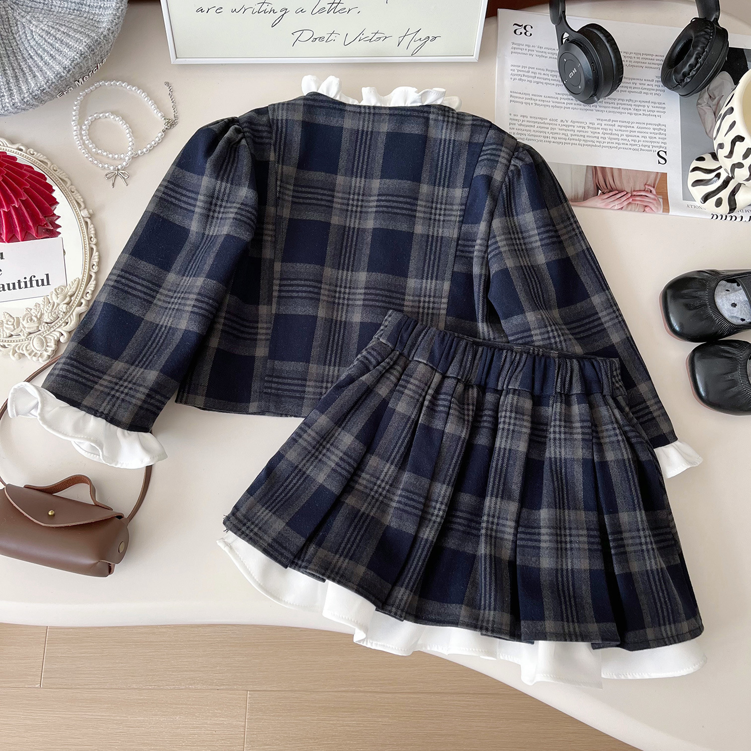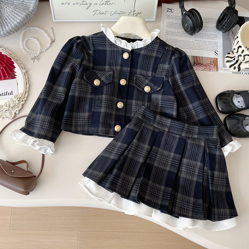 여아 정장 체크무늬 투피스 세트 2025 봄 신상 고급스러운 아동 패션 세트 드레스스토어 가기