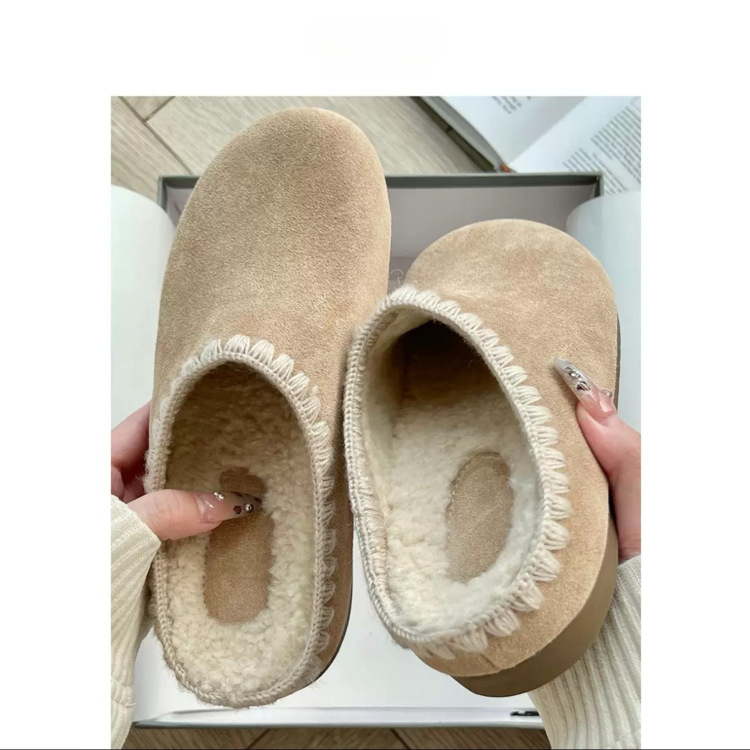 [뒤꿈치 높이 3cm] 두꺼운 바닥 Birkenburg Mao 슬리퍼 여성 2024 년 겨울 새 외부 높이 캐주얼 면 반 슬리퍼