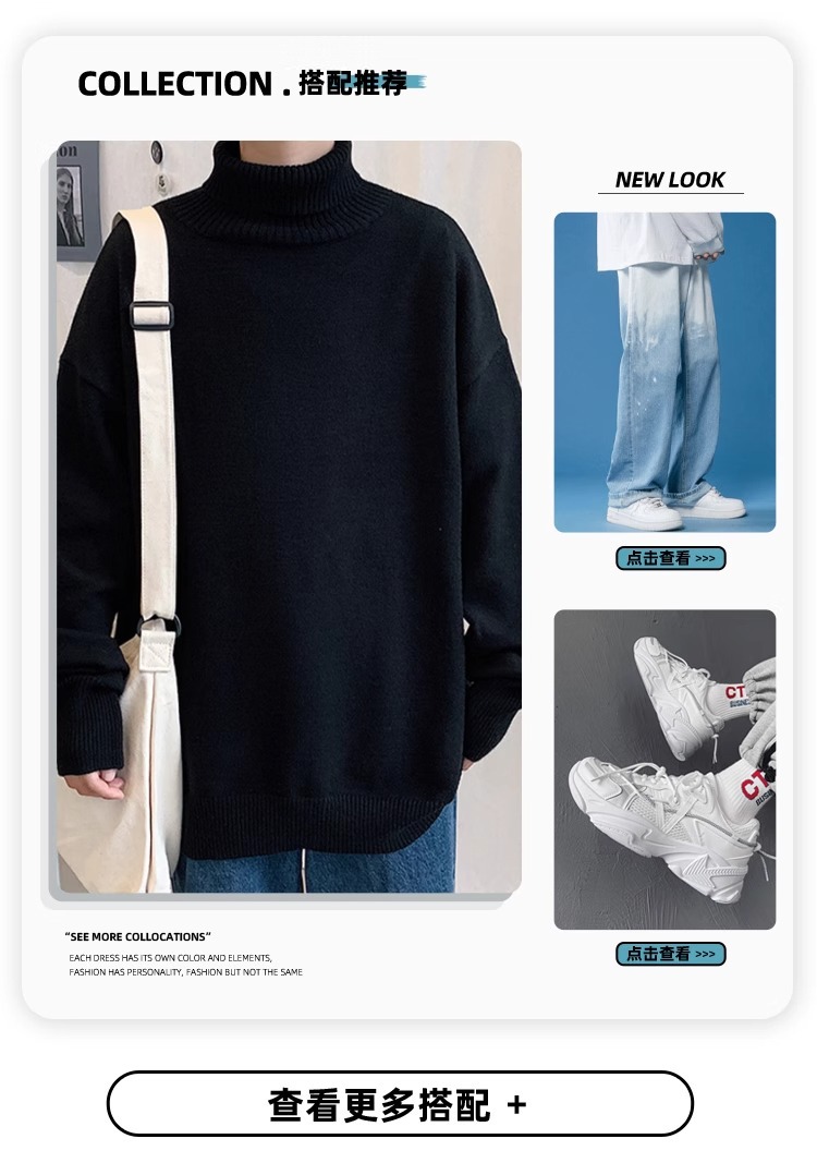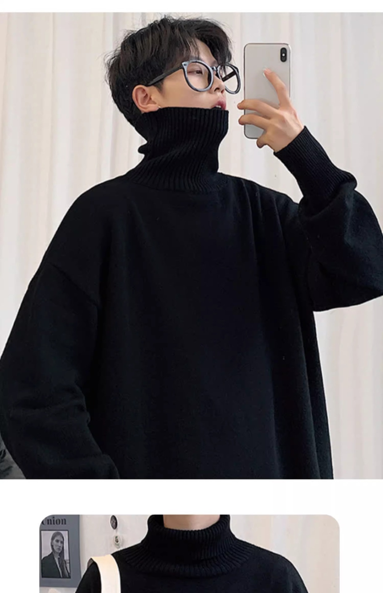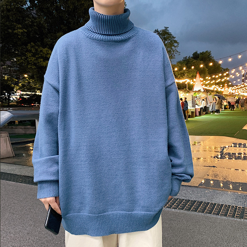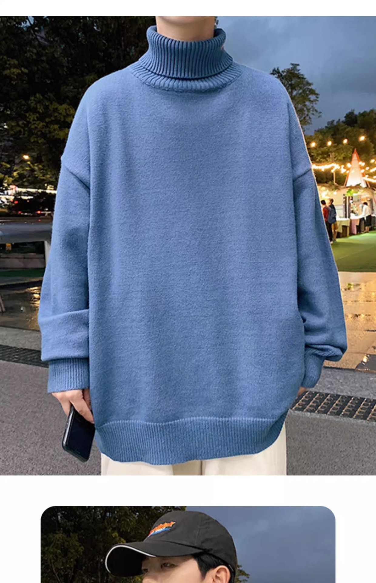 2023 새로운 도착 터틀넥 스웨터 남자의 가을과 겨울 느슨한 유행 플러스 사이즈 스웨터 캐주얼 솔리드 컬러 탑스토어 가기