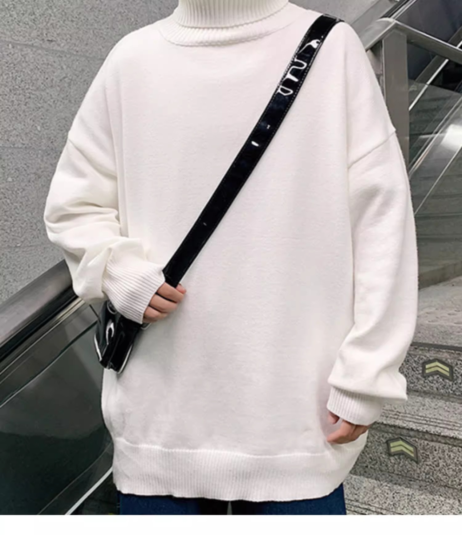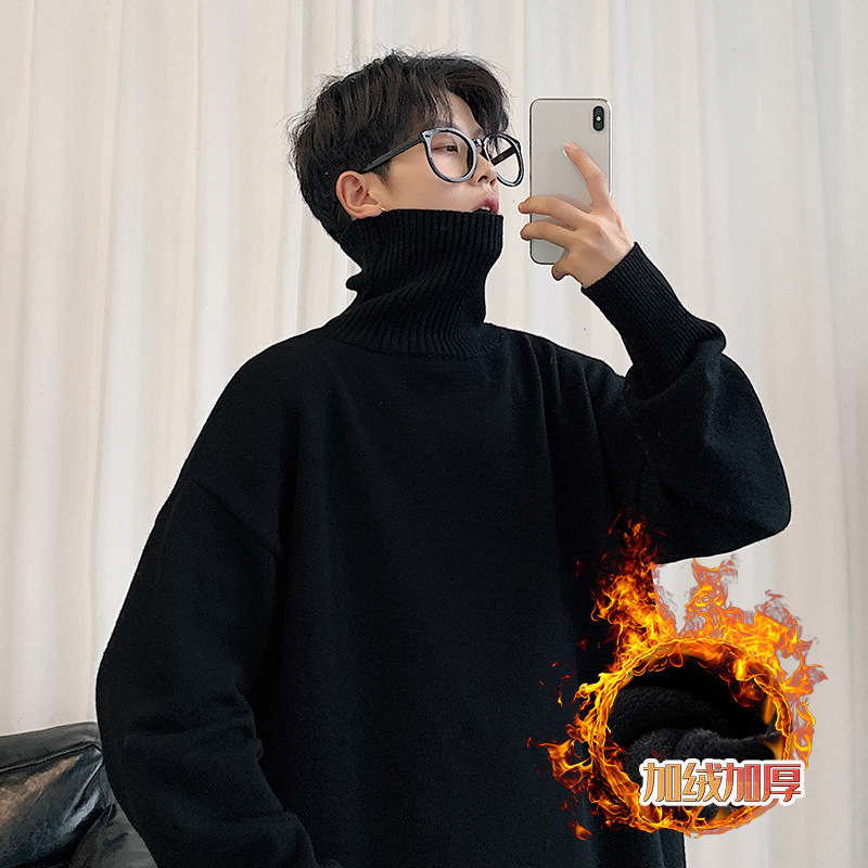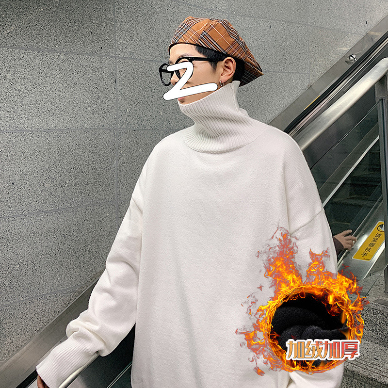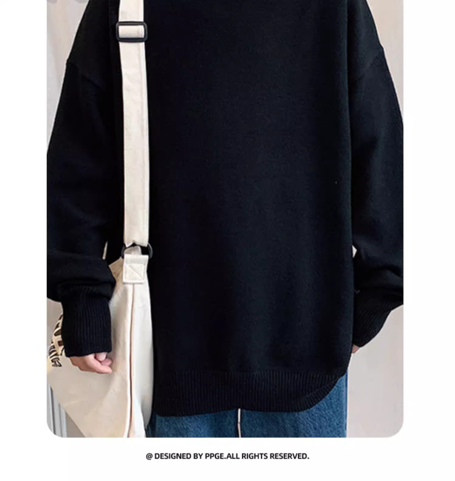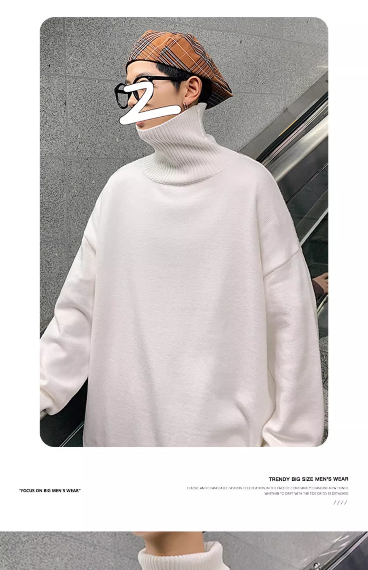 2023 새로운 도착 터틀넥 스웨터 남자의 가을과 겨울 느슨한 유행 플러스 사이즈 스웨터 캐주얼 솔리드 컬러 탑