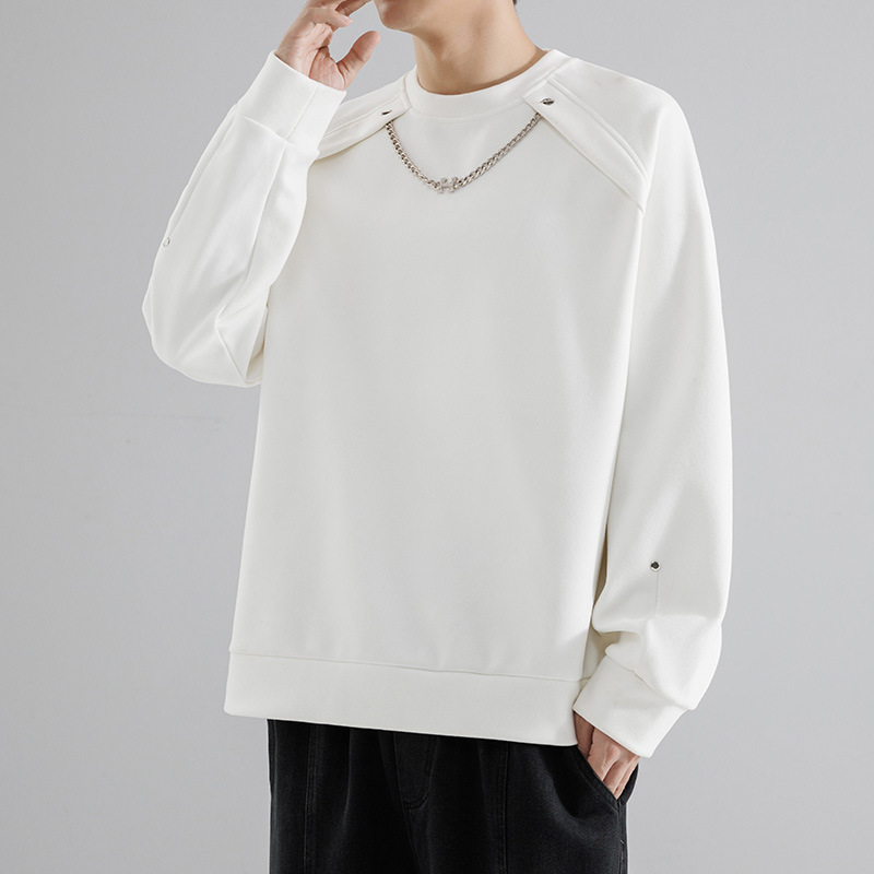 가을 단색 스웨터 티셔츠 남성용 트렌디 루즈 크루 넥 올 매치 풀오버 보이즈 가을과 겨울 내베이스 셔츠